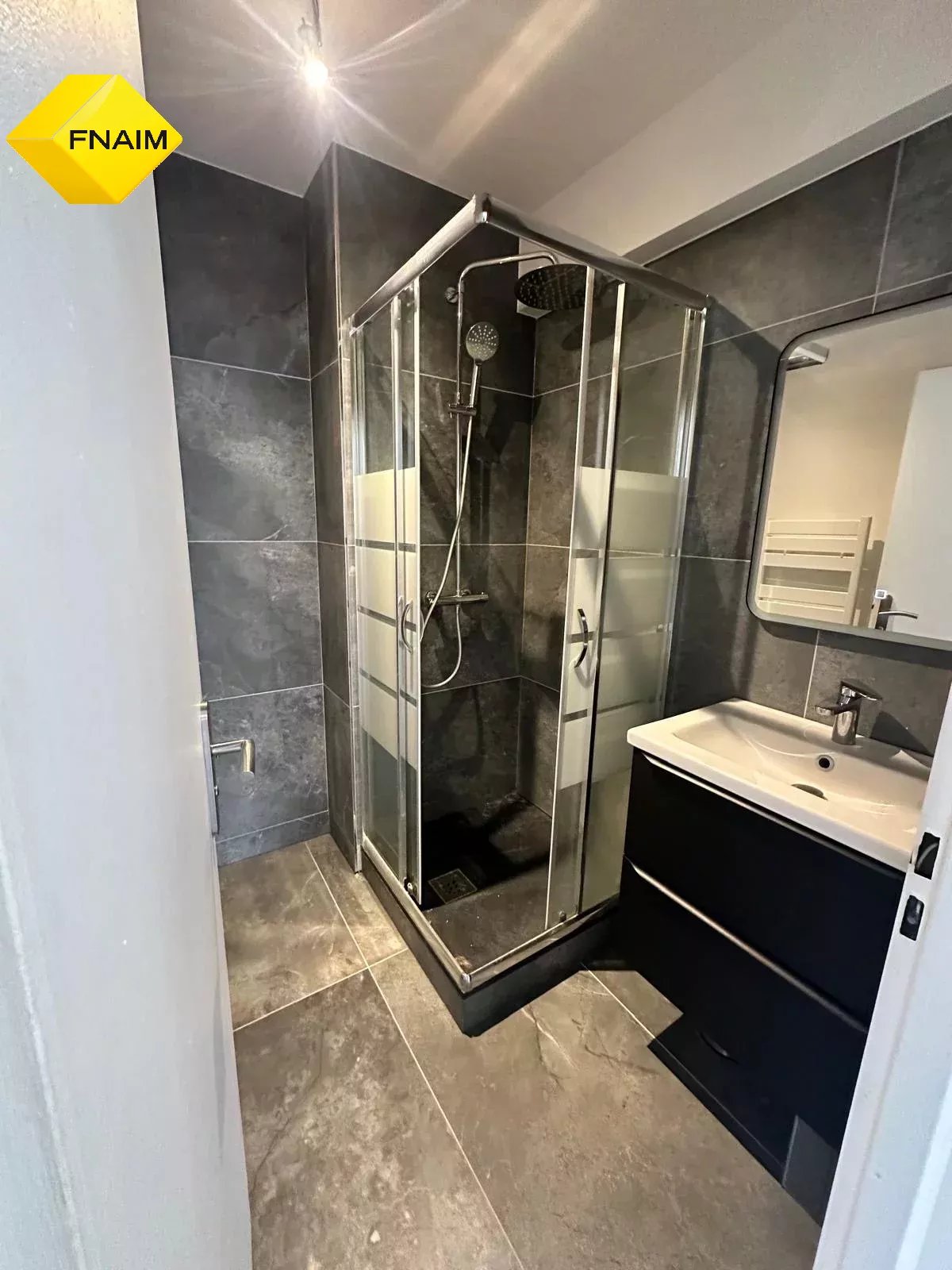L'appartement dispose d'une entrée avec placard, d'une pièce de vie très lumineuse ouvrant sur une cuisine moderne et fonctionnelle, dégagement, deux chambres avec placards, salle d'eau et WC séparé.