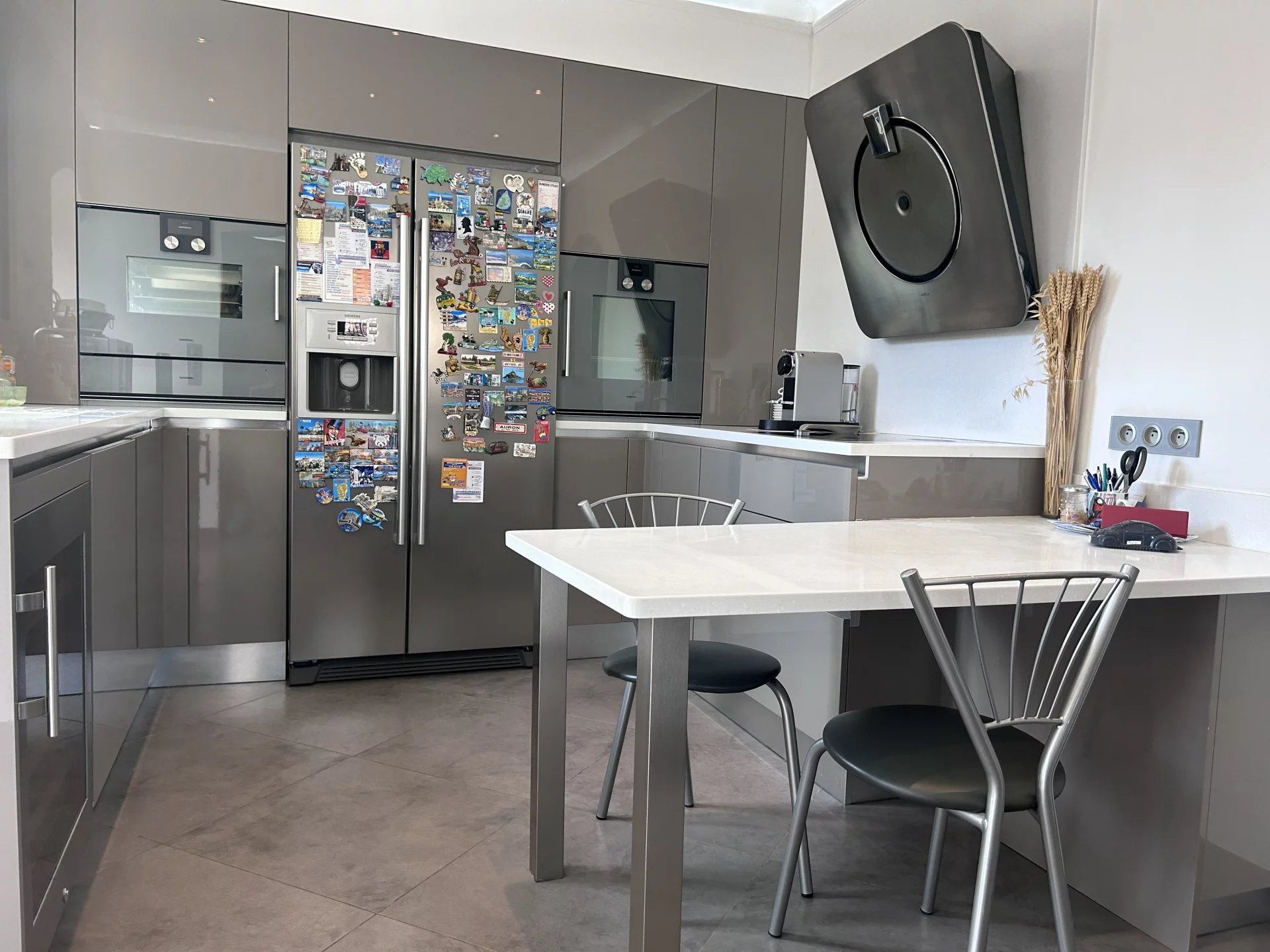 3 suites parentales avec salle d’eau et wc, une cuisine aménagée ouverte sur le séjour.