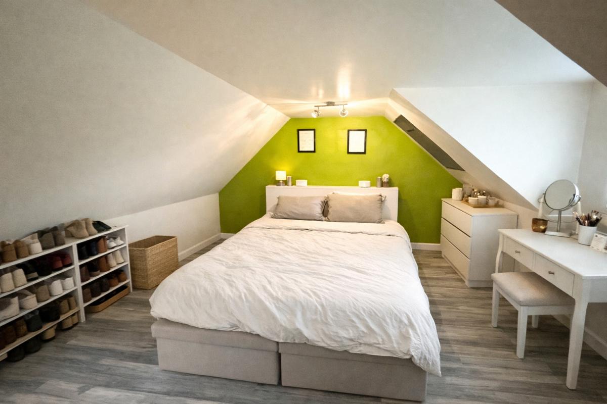 Au deuxième étage, une grande chambre parentale.