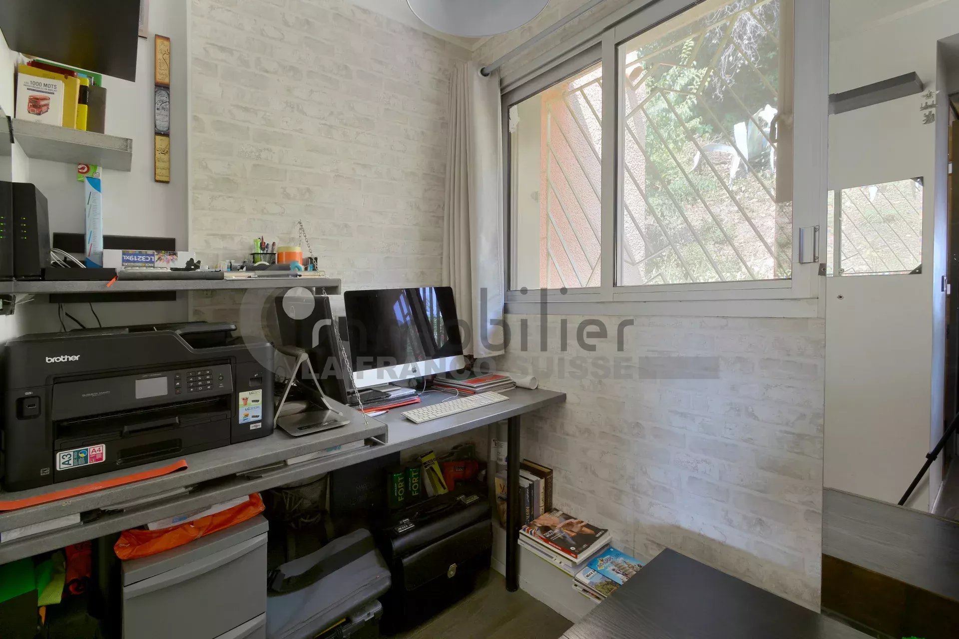 Cet appartement situé en dernier étage est composé d'un agréable séjour/cuisine climatisé donnant sur la terrasse. une chambre. une salle d'eau avec wc et un bureau.