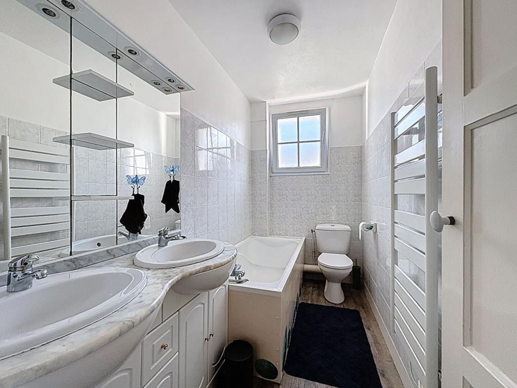 Au premier étage, un palier dessert deux chambres confortables et une salle de bains avec WC, tandis qu'au deuxième étage, vous profiterez d'une suite parentale indépendante avec salle d'eau et WC. En complément, une cave totale offre un bel espace de rangement.