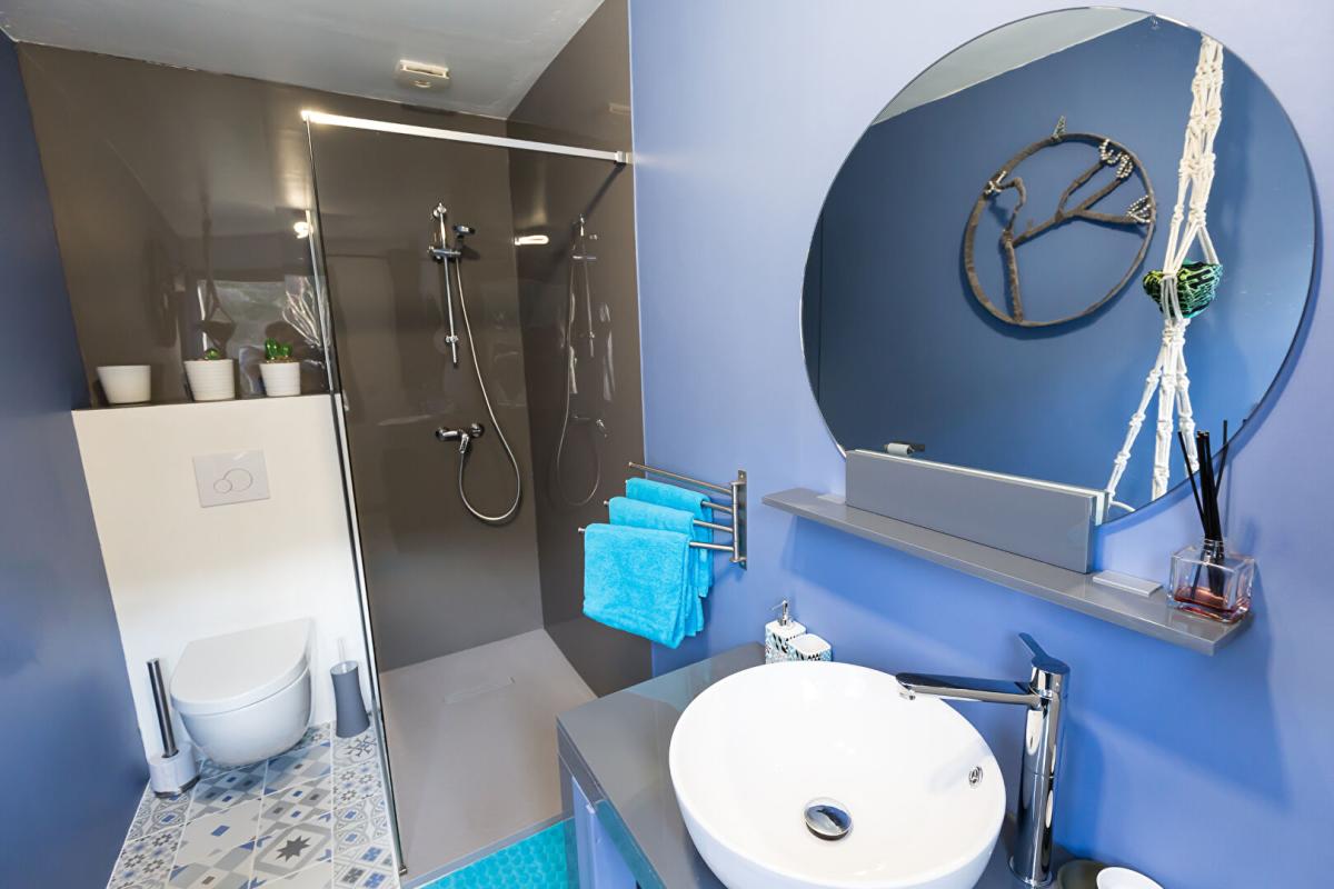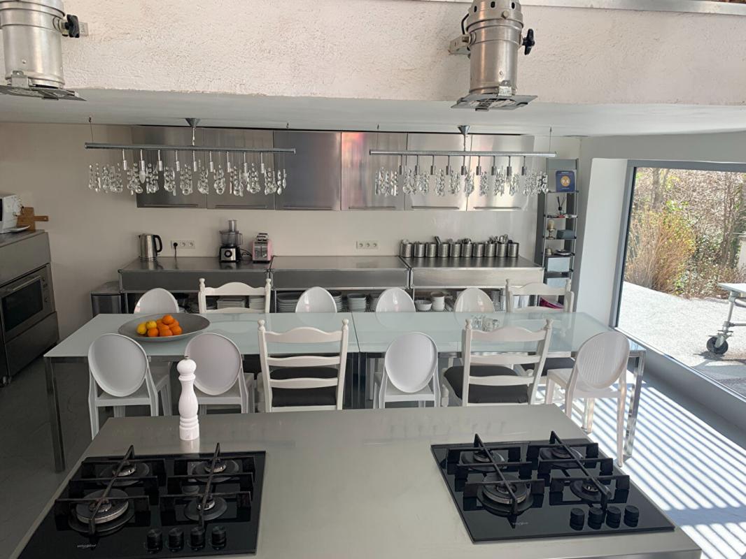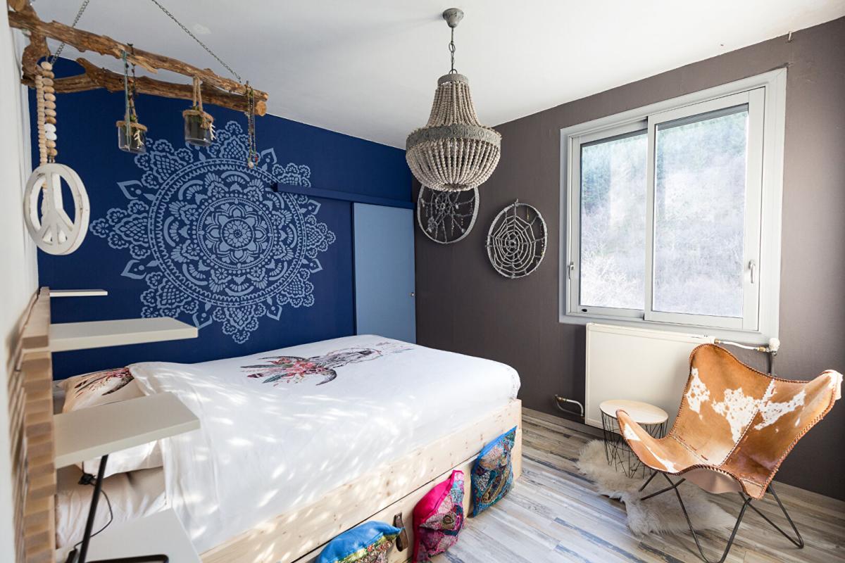 Un logement indépendant style loft permet aux propriétaires de vivre sur place en toute intimité : belle pièce de vie avec insert, coin chambre avec salle de bain,WC, grande cuisine équipée lumineuse ouverte sur terrasse plein Sud .