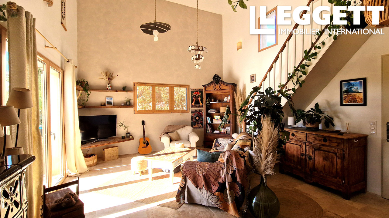 A42888LHS34 - La villa, âgée de seulement trois ans, occupe une place de choix au sommet de ce charmant village, offrant à ses propriétaires une vue imprenable sur la campagne du Minervois et, par temps clair, jusqu'aux Pyrénées. Conçue pour être lumineuse et proche de la nature, elle affiche également d'excellentes performances énergétiques. Avec deux chambres et une salle de bains au rez-de-chaussée, il est possible de vivre sur un seul étage si on le souhaite. La suite parentale, composée d'une chambre, d'un dressing et d'une salle d'eau, se trouve au premier étage.