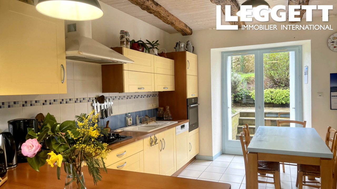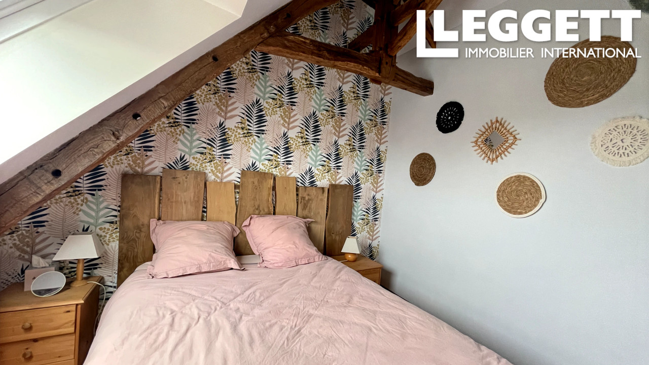 Au rez-de-chaussée, l'entrée dessert un vaste salon avec un poêle à bois et un espace bar original, aménagé avec ingéniosité à partir de l'ancien pressoir à cidre de la maison. Vous trouverez également une cuisine aménagée et équipée avec accès aux terrasses avant et arrière, une arrière-cuisine/buanderie fonctionnelle ainsi qu'une salle d'eau avec WC. Le premier étage est aménagé sur deux niveaux. D'un côté se trouvent trois chambres ainsi qu'une mezzanine actuellement utilisée comme bureau. De l'autre côté, deux chambres supplémentaires, une salle de bains familiale et un WC séparé.