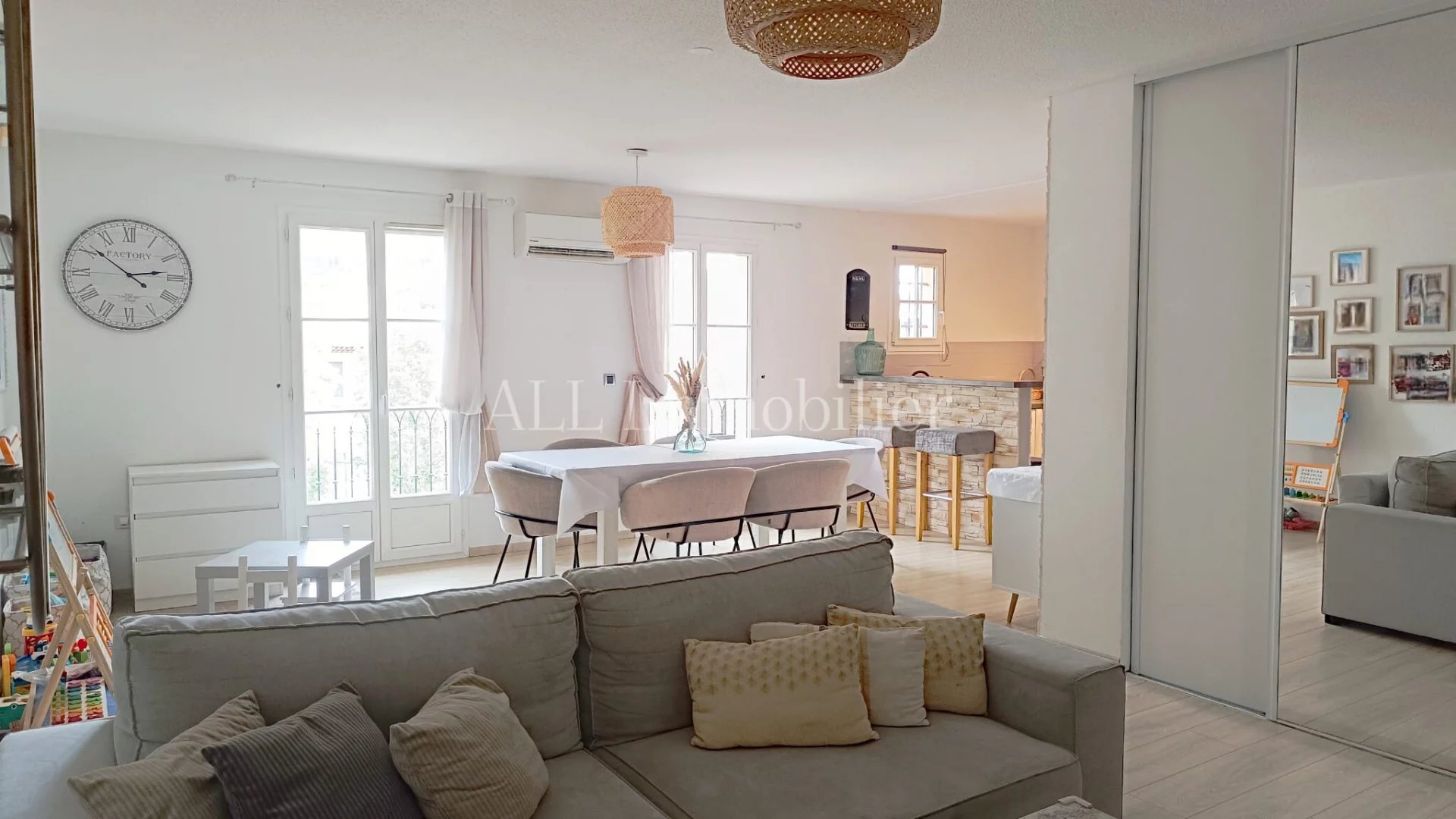 Entièrement rénové, ce logement bénéficie de la climatisation dans le séjour.