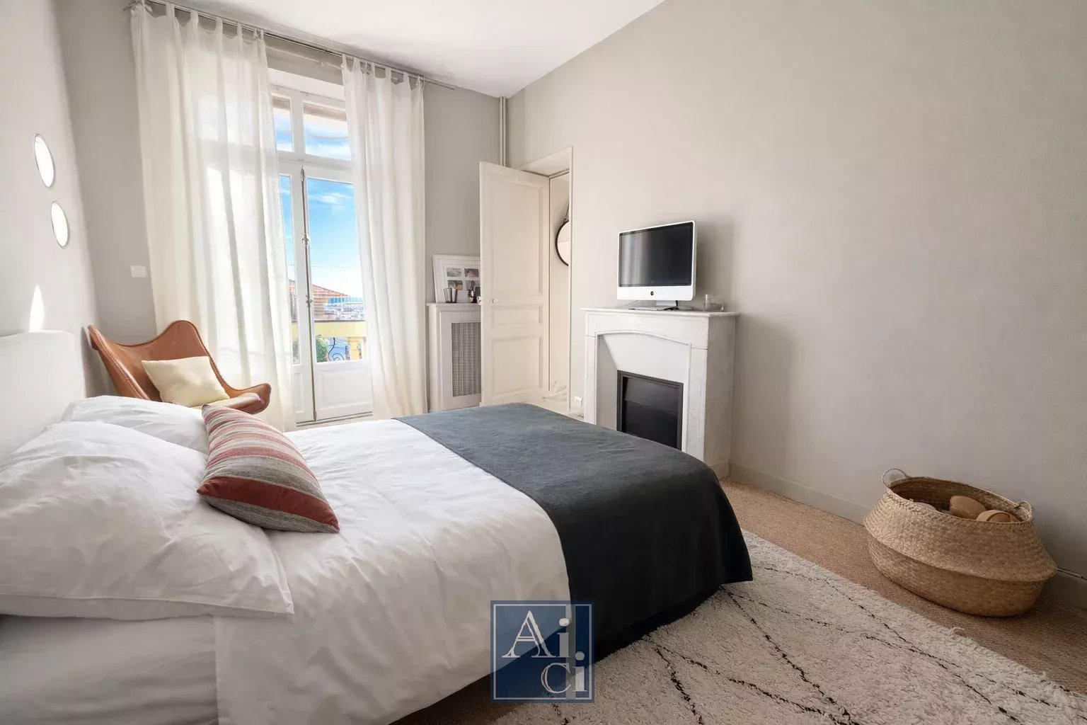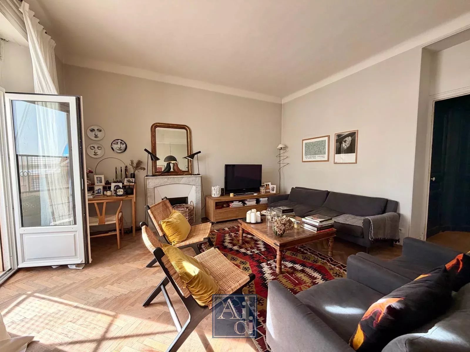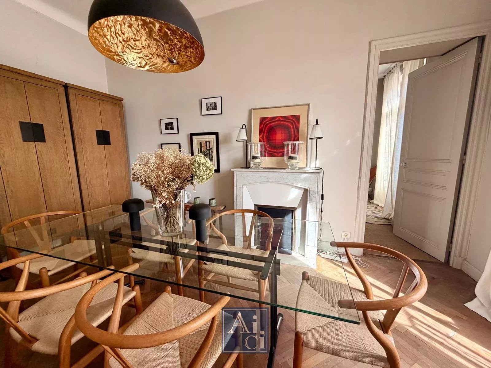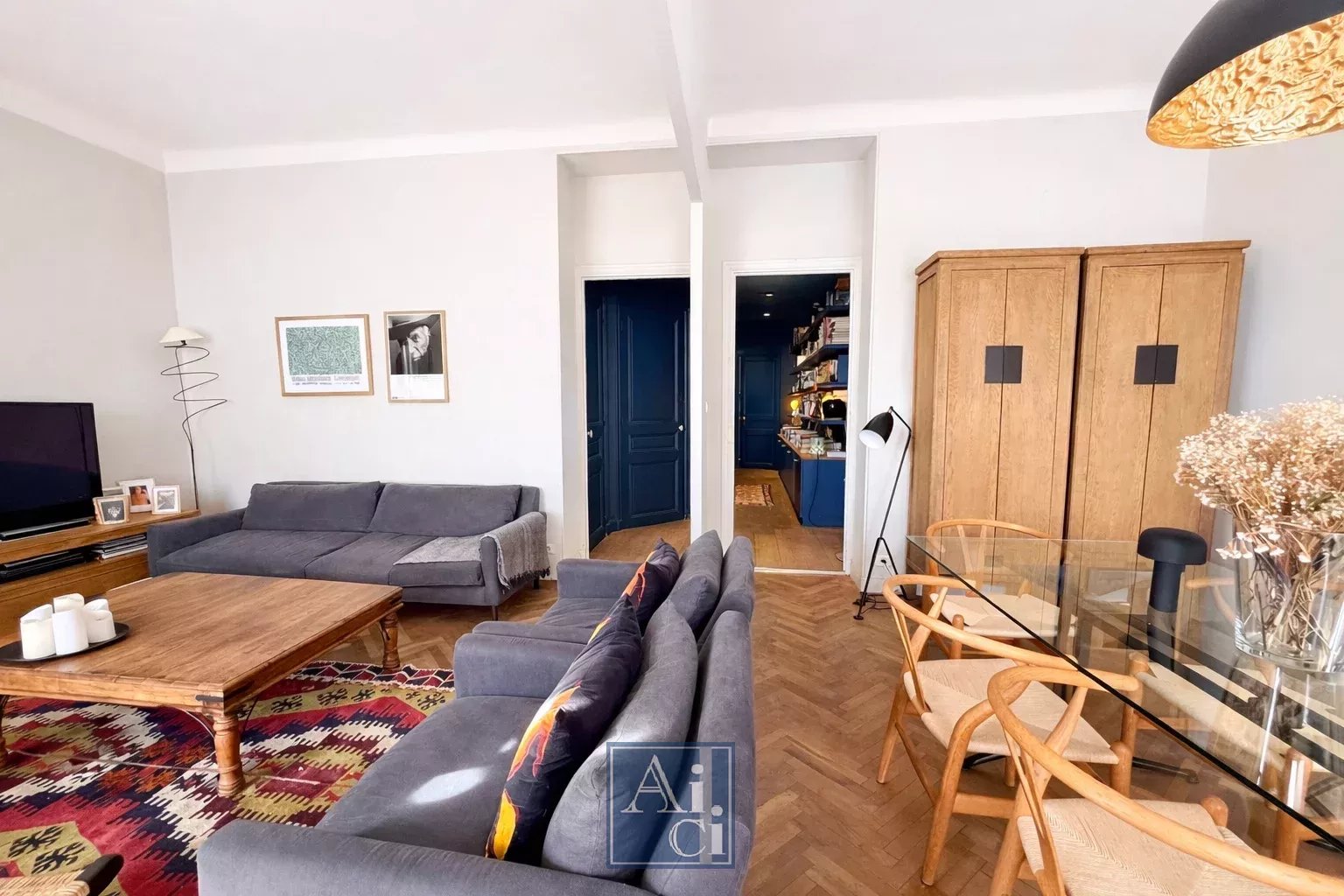 Séjour double de 33 m², trois chambres, volumes généreux, belle hauteur sous plafond.
