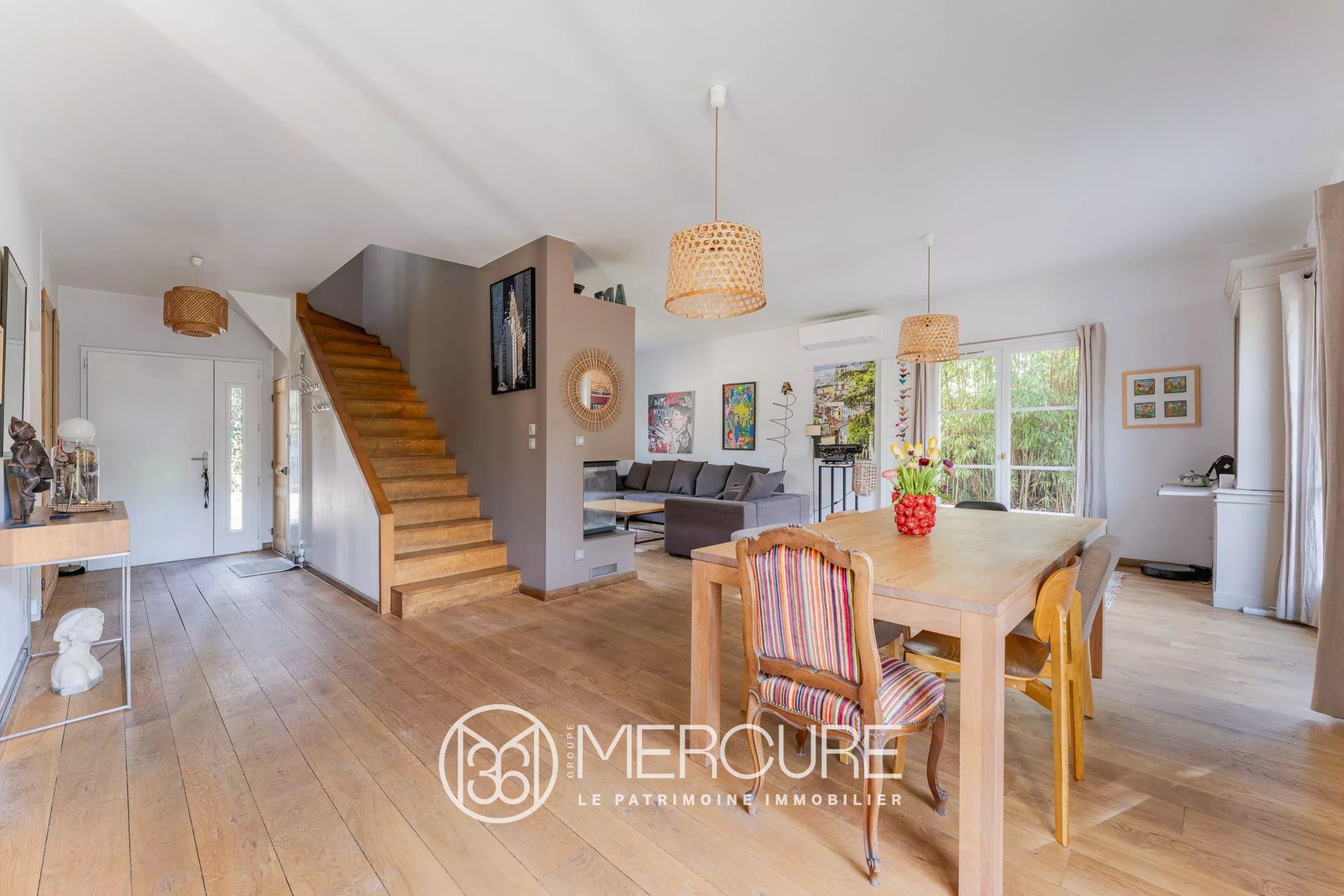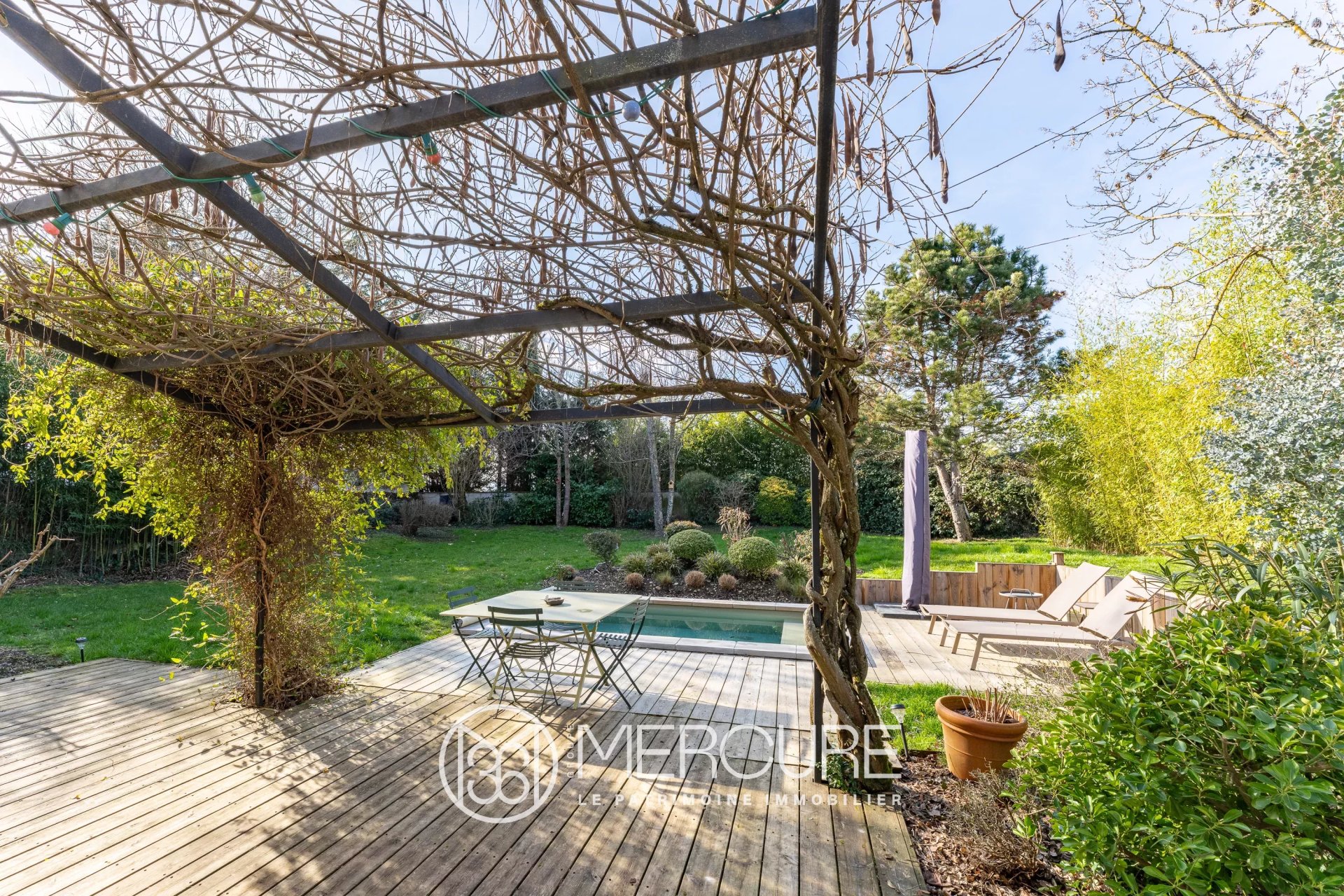 Dans un environnement calme et résidentiel, élégante maison familiale construite en 2002, offrant environ 206 m² habitables au cœur d’un jardin paysager de 1 400 m² avec piscine, exposé Est–Ouest.