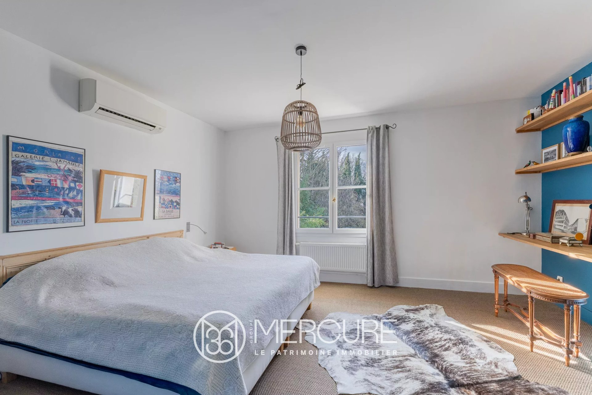 À l’étage, deux chambres reliées par une salle d’eau communicante et une suite parentale climatisée avec dressing sur mesure et salle de bains complète composent l’espace nuit.