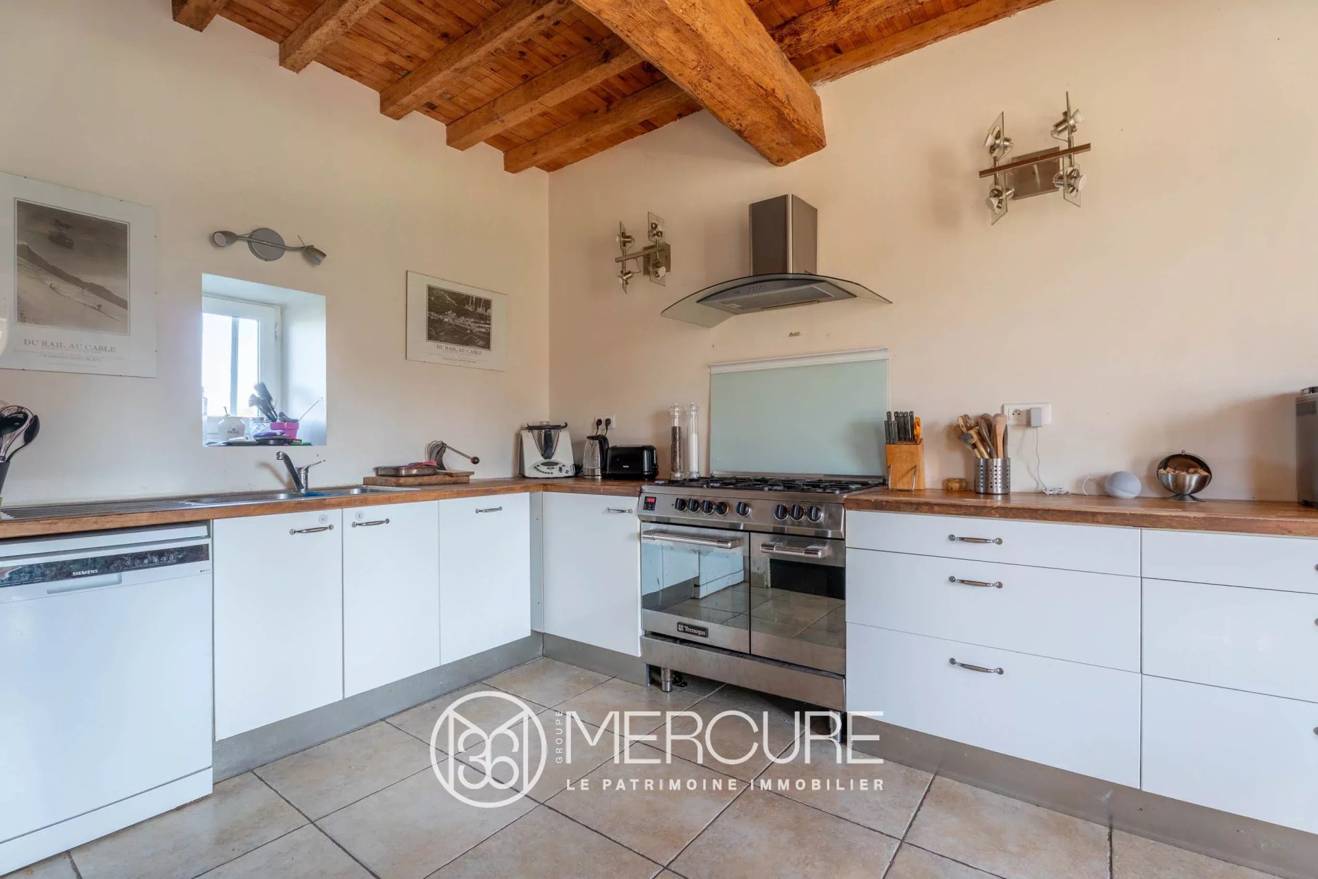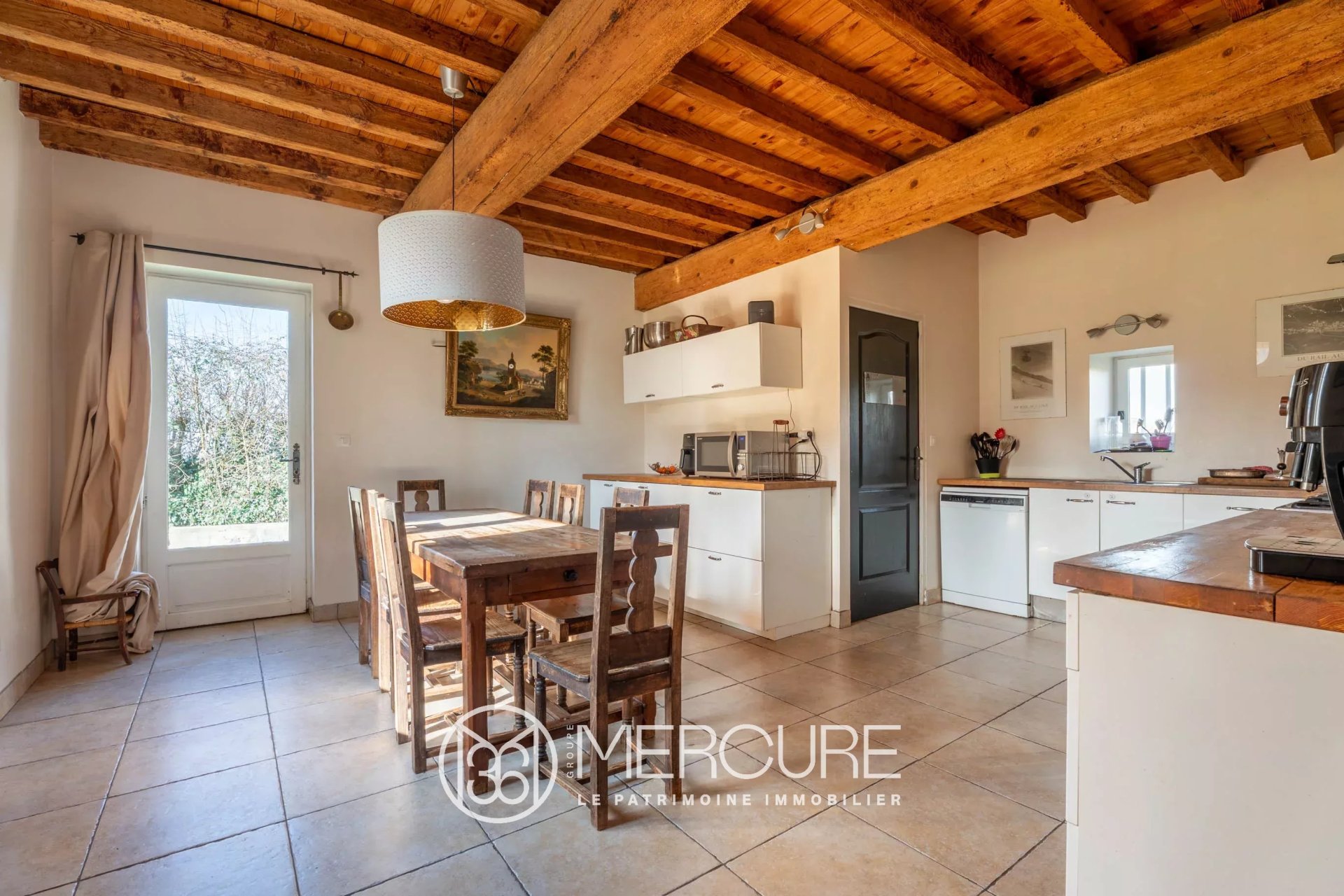 Entre Dombes et Val de Saône, à quelques minutes à pied du bourg de Civrieux-en-Dombes, cette belle ancienne ferme en pisé de 200 m² habitables s'élève sur trois niveaux au cœur d'un parc paysager de 6 050 m²(non constructible), sans vis-à-vis, avec vue dégagée sur les Monts du Lyonnais.