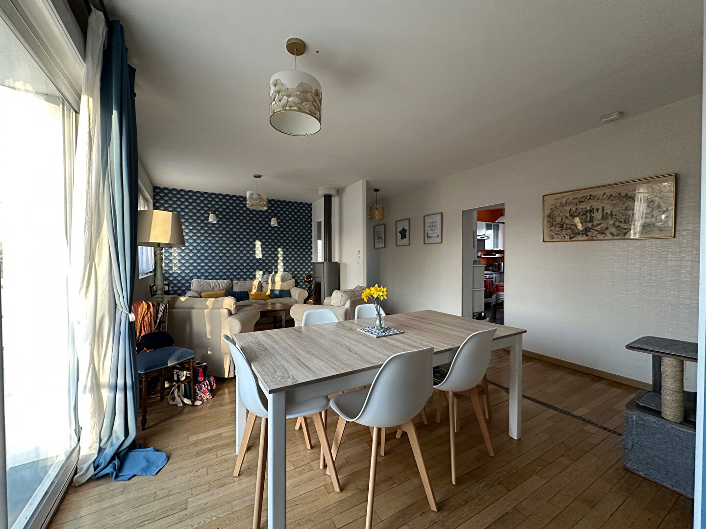 À l'étage, une vaste pièce de vie avec beaucoup de charme, cuisine aménagée , équipée, salle d'eau WC et trois chambres.
