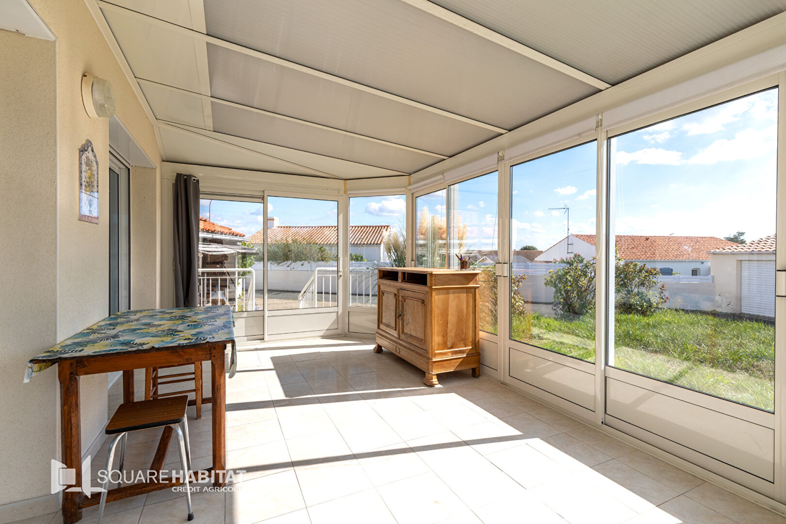 Vous profiterez d'une maison principale entièrement rénovée en 2025, offrant confort et modernité. Elle se compose d'une entrée avec placards, d'une spacieuse pièce de vie exposée plein sud donnant accès à une véranda de qualité et sa terrasse, de deux chambres avec rangements, d'un cellier ainsi que d'un grand garage avec mezzanine.