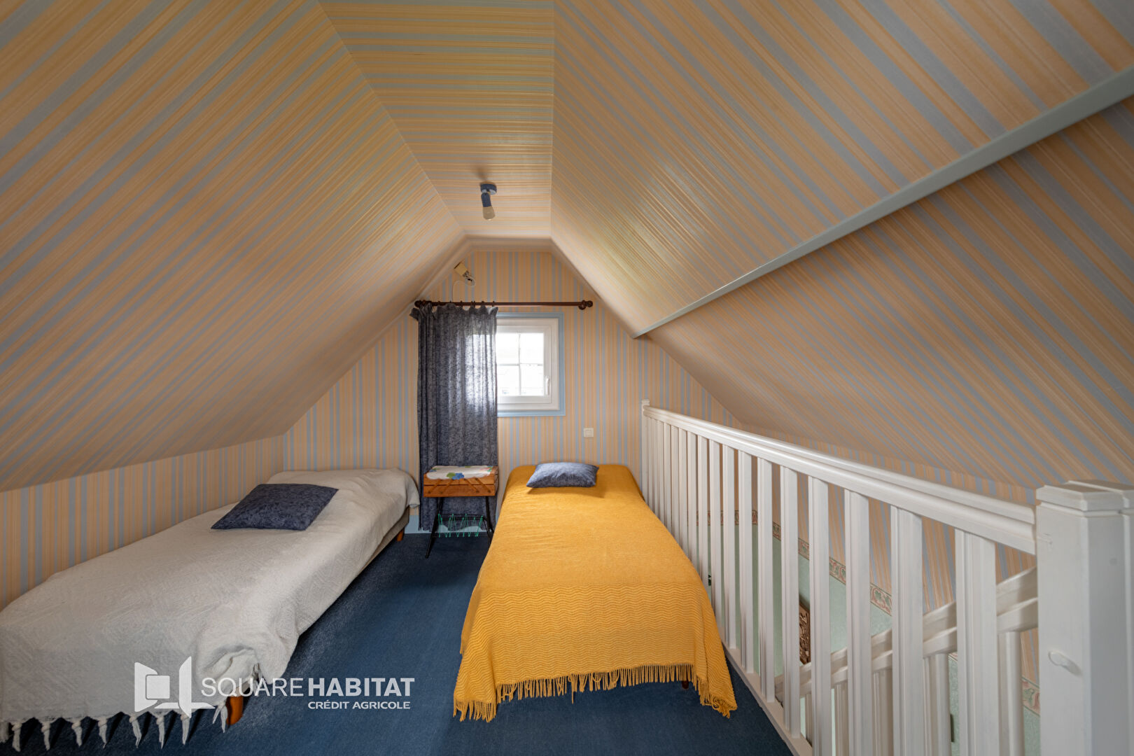à l'étage, un escalier dans le salon vous emmène dans une première chambre en mezzanine, et un second escalier à côté de l'entrée, vous dessert sur un palier avec une salle d'eau, un WC et une seconde chambre.