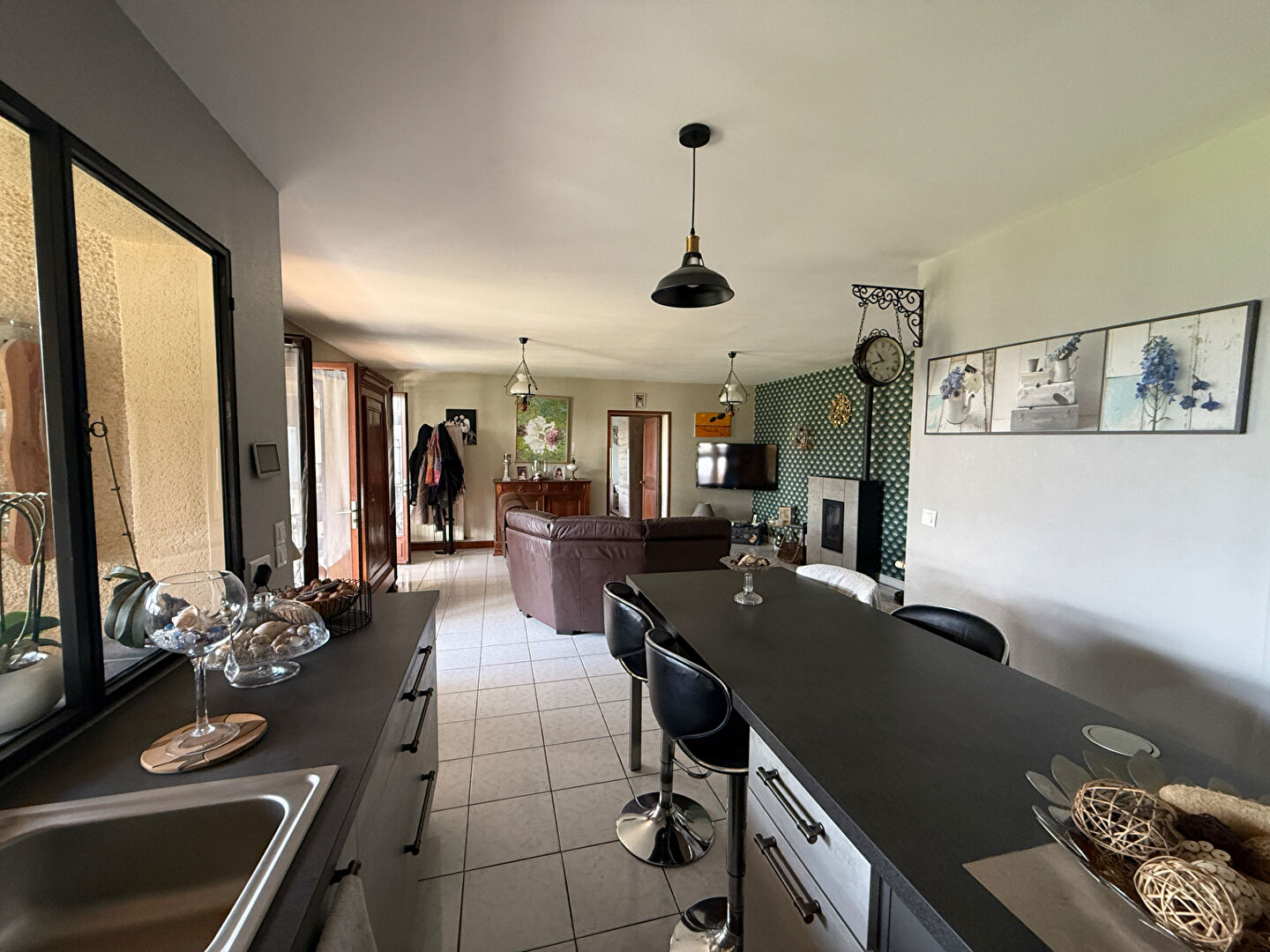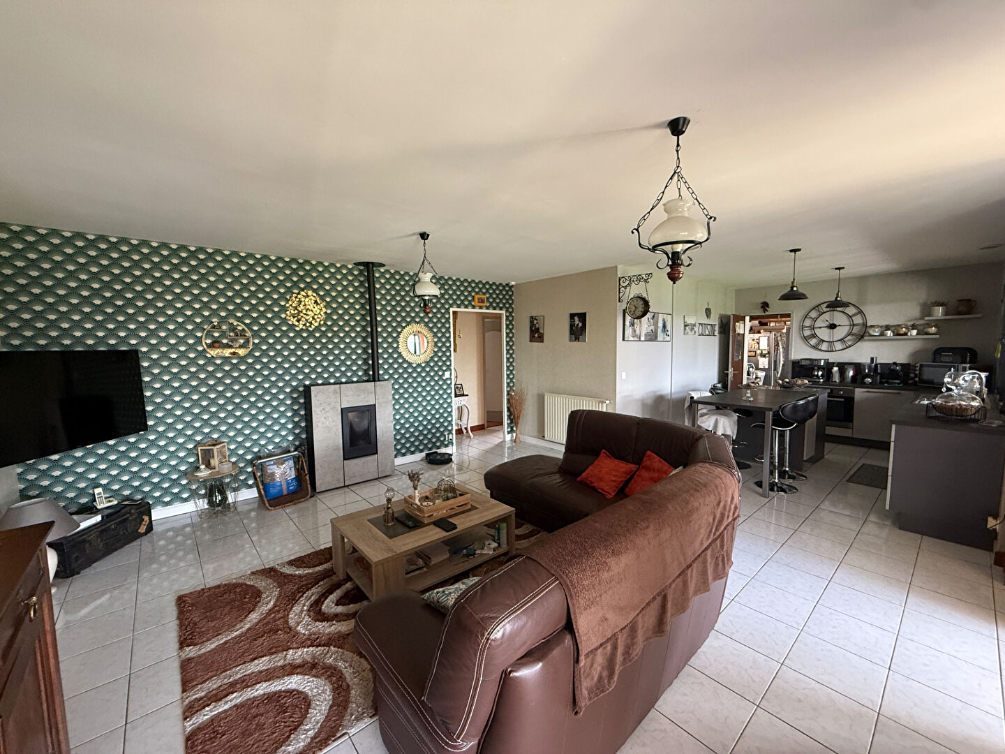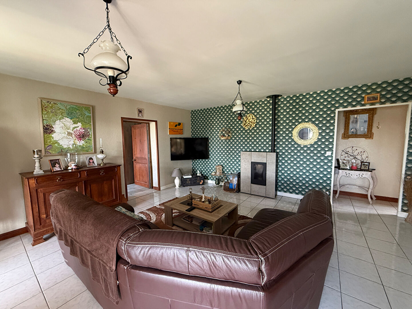 À l'intérieur vous découvrirez une vaste pièce à vivre avec cuisine aménagée et équipée et un poêle à granulés connecté, grande véranda lumineuse chauffée, quatre chambres, un cellier/buanderie de 32 m² , une salle d'eau et deux WC.