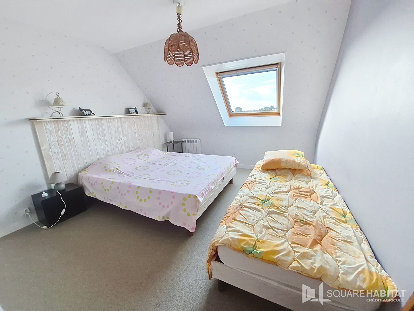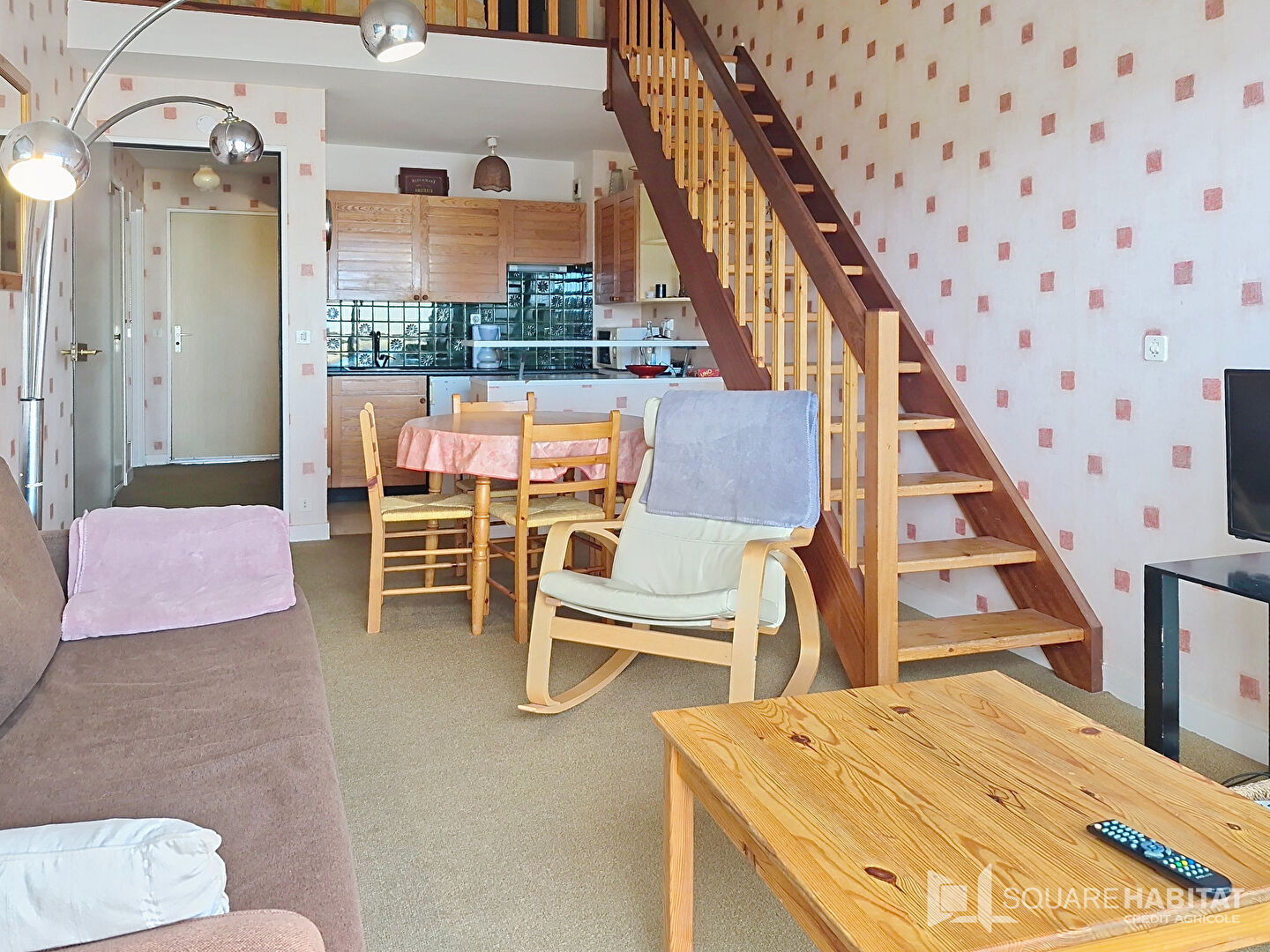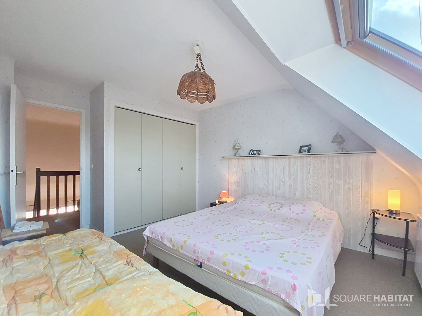 A l'étage sur une dalle béton, un mezzanine avec coin repos et une chambre avec placard.