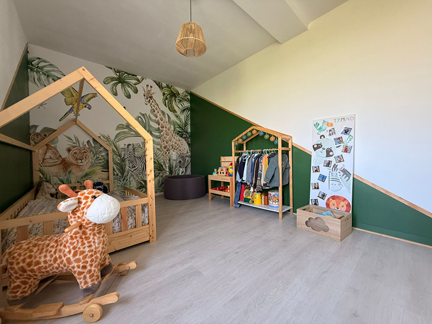À l'étage, vous trouverez quatre belles chambres lumineuses, idéales pour accueillir toute la famille. Le rez-de-chaussée propose une cuisine aménagée et entièrement équipée, ouverte sur une agréable pièce de vie chaleureuse agrémentée d'un poêle à granulés, parfait pour créer une atmosphère conviviale en toute saison. Des travaux restent toutefois à terminer dans la pièce de vie.