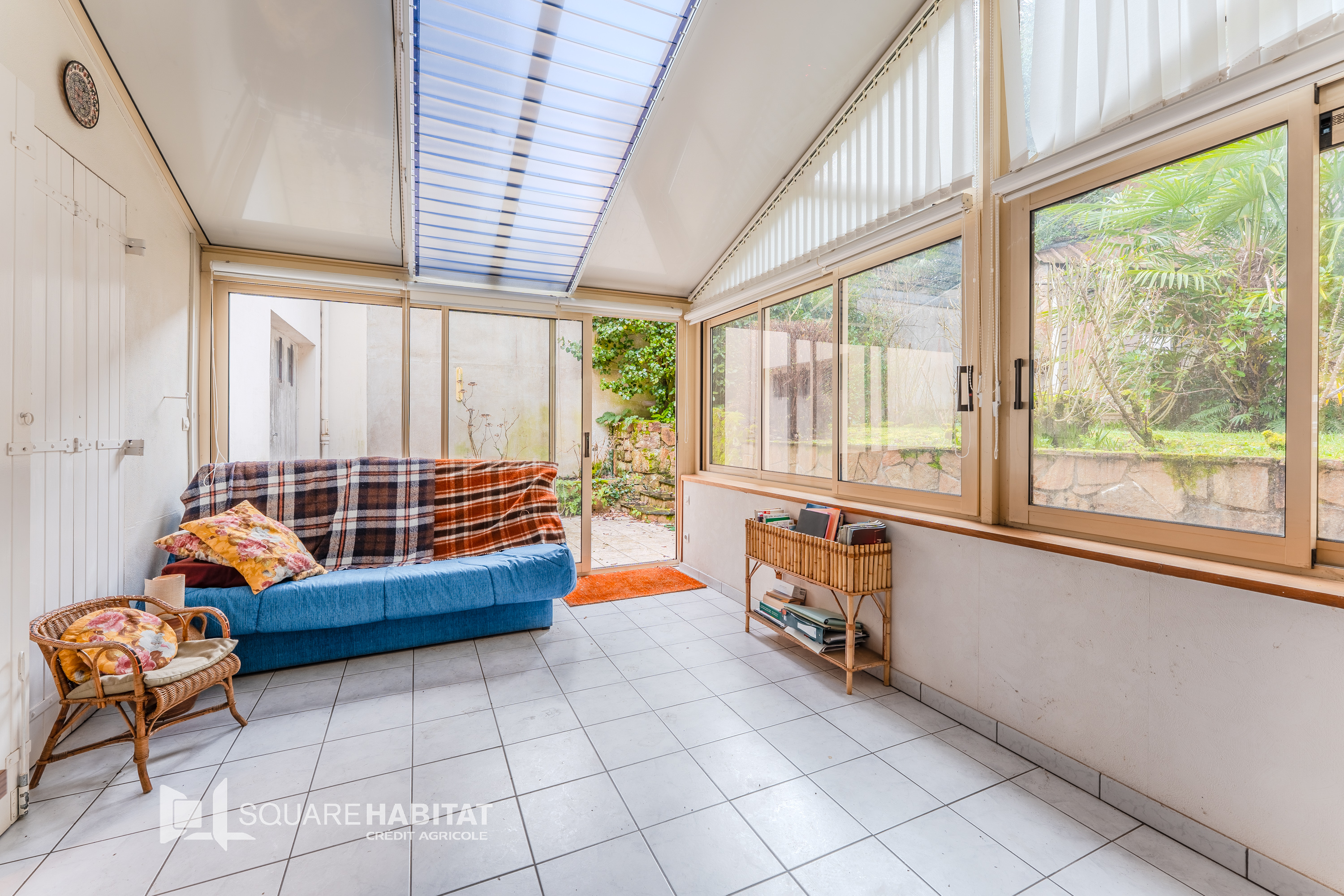 La véranda et le jardin de 278 m² ouvrent la voie à un véritable projet d'extension ou de réaménagement paysager.