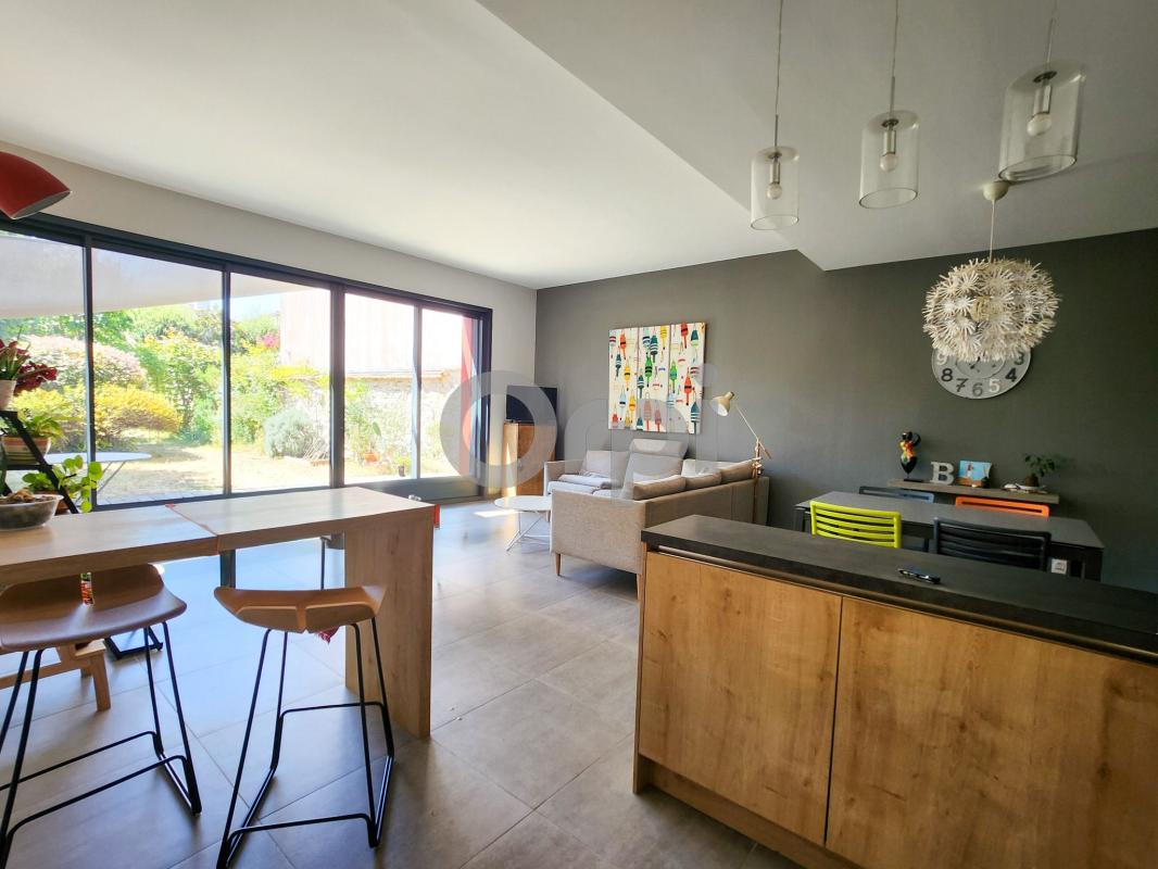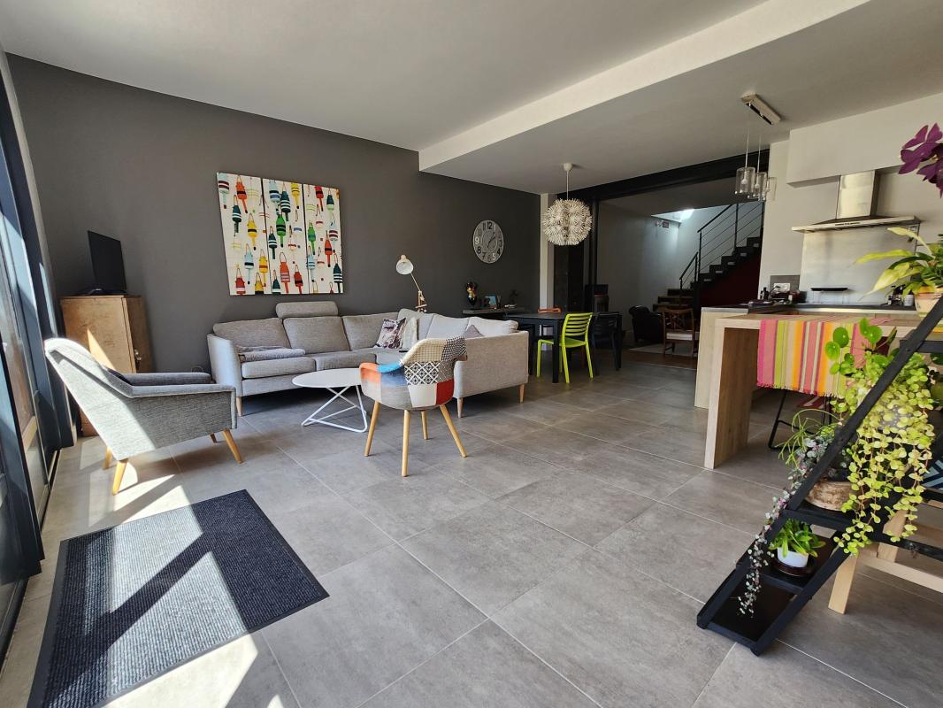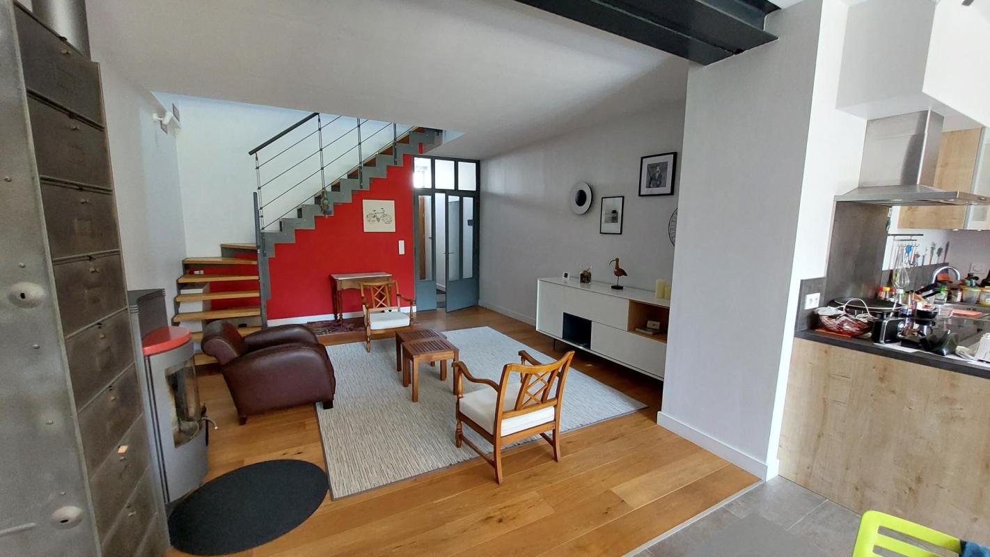 Trés belle rénovation pour cette grande échoppe qui allie le cachet de l'ancien et le confort du contemporain. Elle dispose donc de plain pieds, d'une entrée , d'un magnifique salon avec cuisine ouverte, le tout orienté ouest pour une superficie de 55m² environ. Une chambre et sa salle d'eau ainsi qu'un wc permettent une vie sans escaliers.