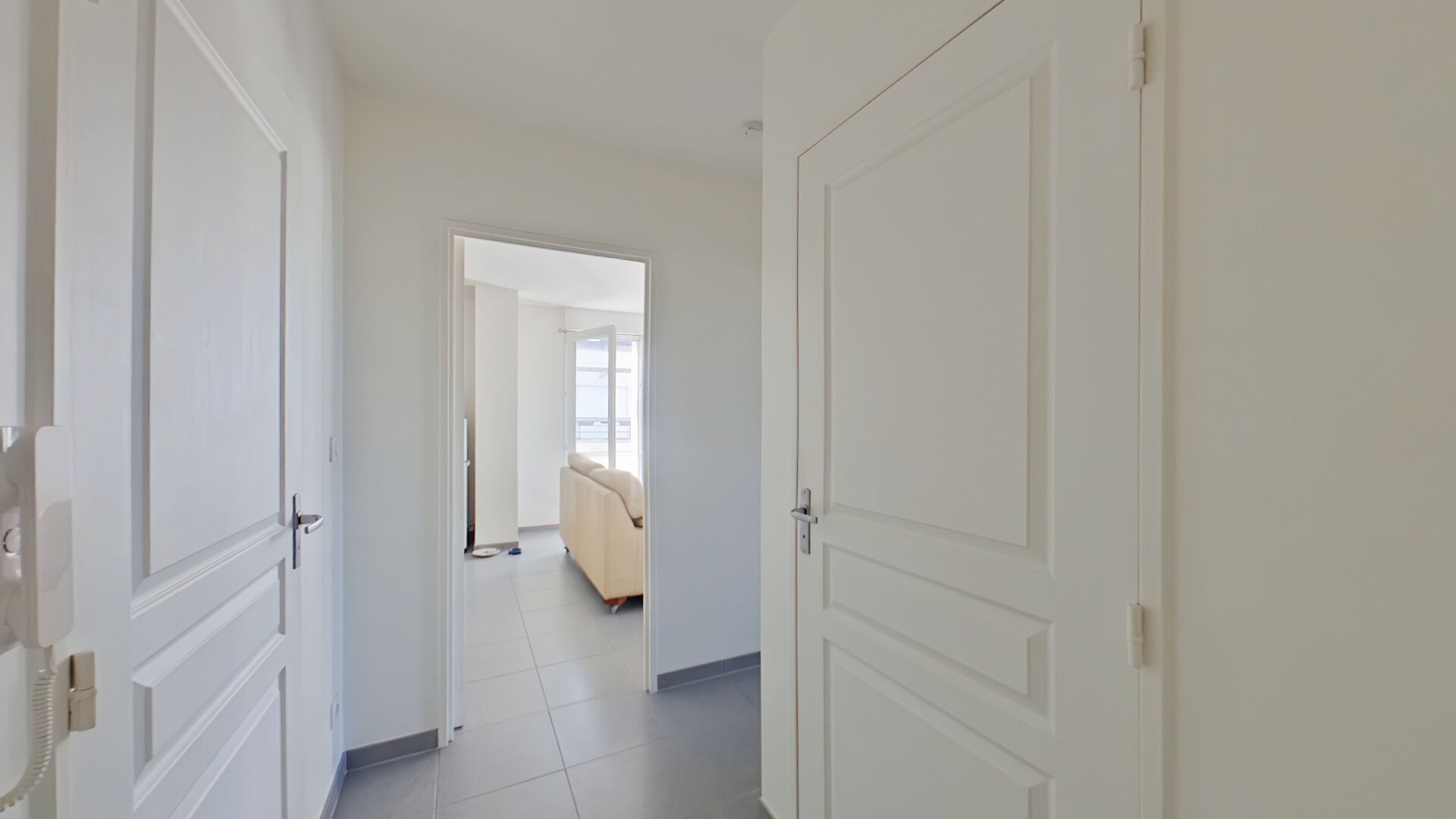 SAINT CYR SUR LOIRE - Appartement Type 2 de 49m² au premier étage d'une résidence de 2016, sécurisée et bien entretenue. Il offre une entrée distribuant la pièce de vie lumineuse avec cuisine ouverte et cellier. Le salon donne accès à une belle terrasse de 15m². Le dégagement dessert la chambre avec placard ainsi que la salle d'eau et un wc séparé.