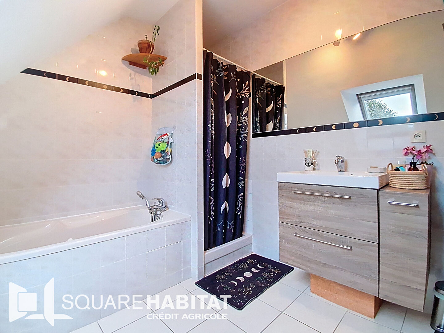 Au rez-de-chaussée, vous profiterez d'un salon-séjour lumineux avec poêle à bois, parfait pour des moments chaleureux, d'une cuisine aménagée et équipée ouverte, d'une chambre avec placards, desservit par un dégagement fonctionnel. À l'étage, un palier, trois belles chambres dont une avec placard et une salle de bains aménagée avec douche. Vous serez également séduit par sa buanderie, son garage, son grenier avec mezzanine (espace de stockage ou potentiel aménagement), sa terrasse, son abri de jardin, son beau terrain agréable et bien exposé. Une maison idéale pour une famille recherchant confort, fonctionnalité et emplacement de qualité. À visiter sans tarder ! Garantie revente 7 ans offerte.