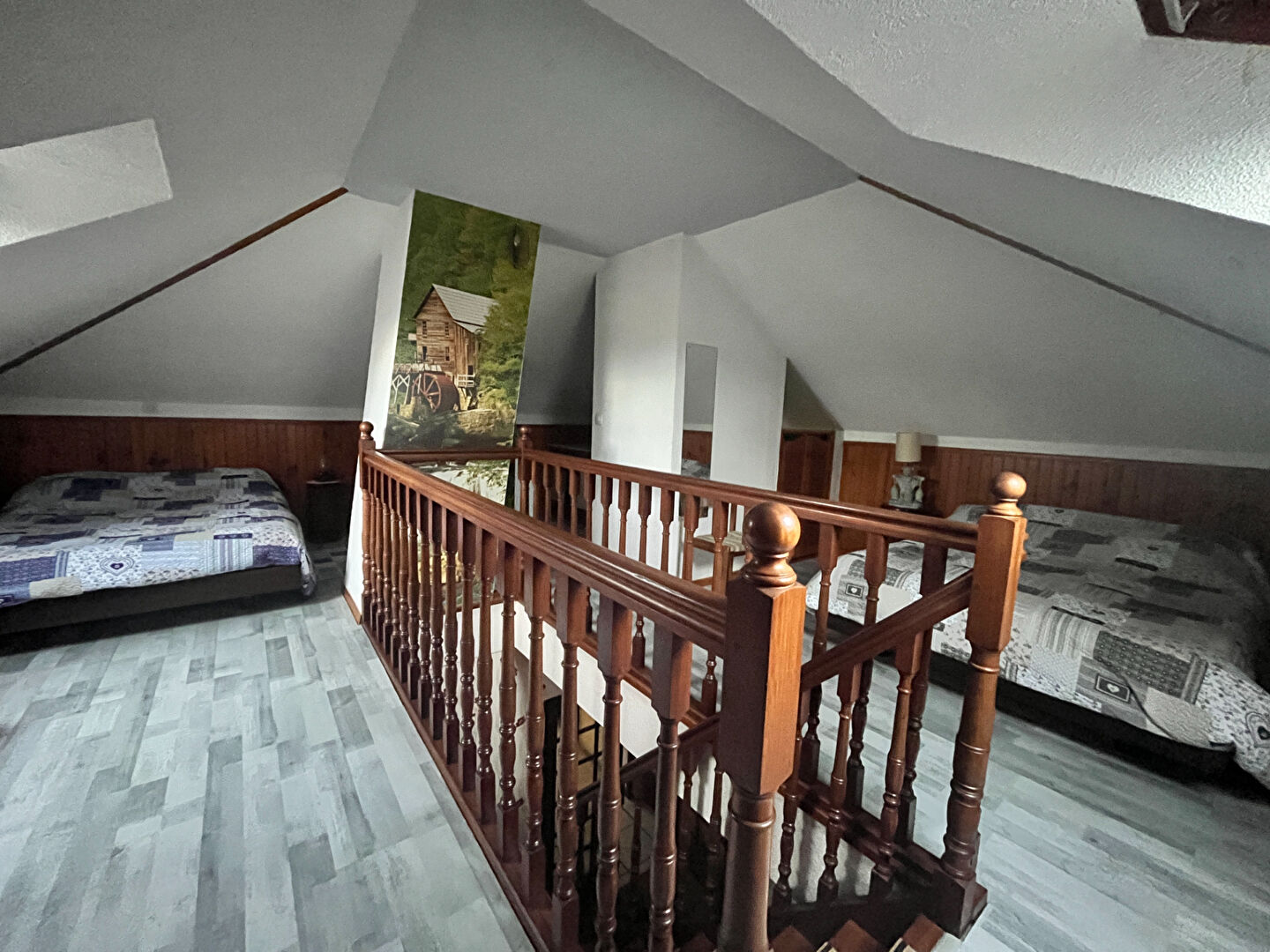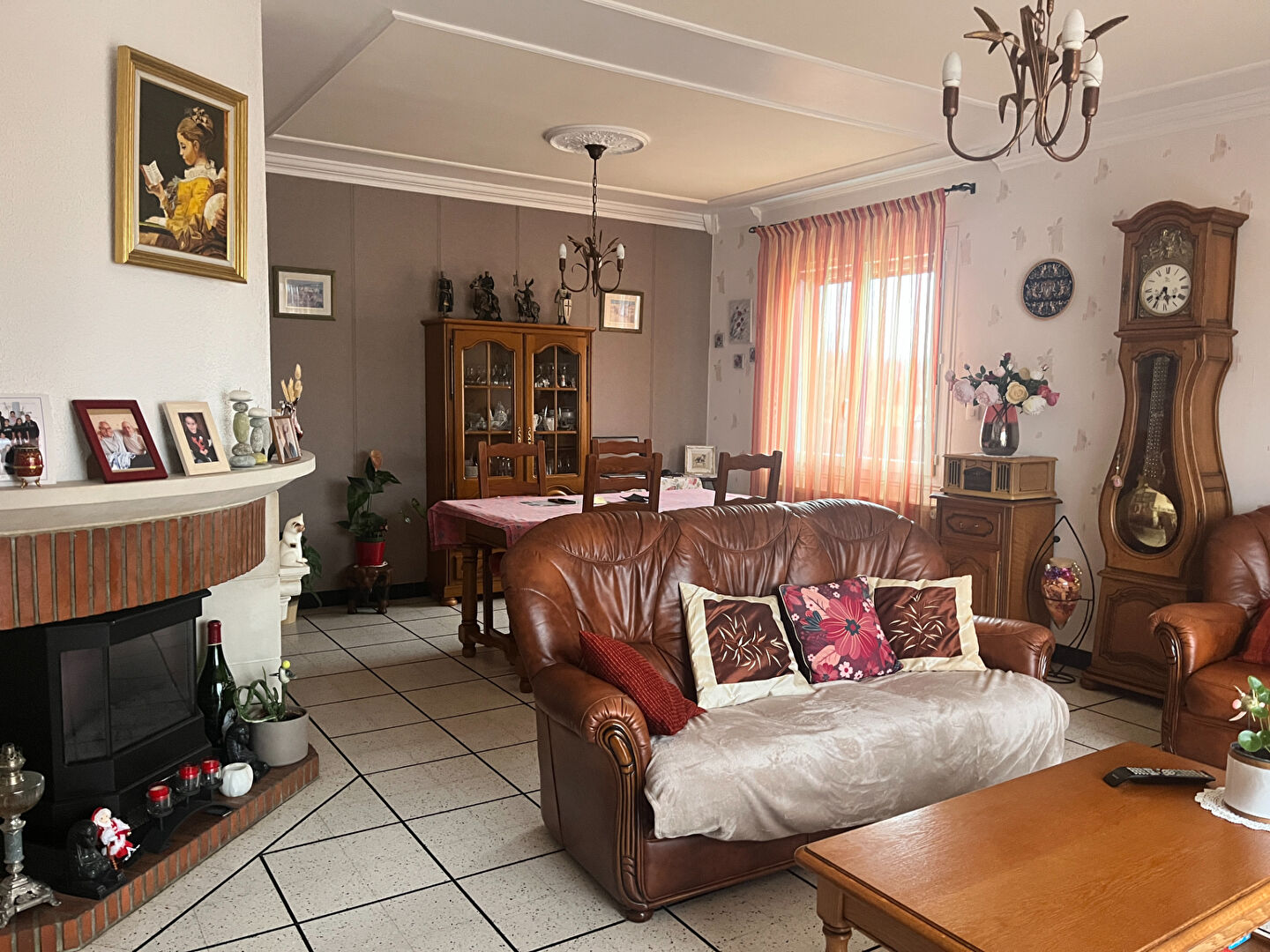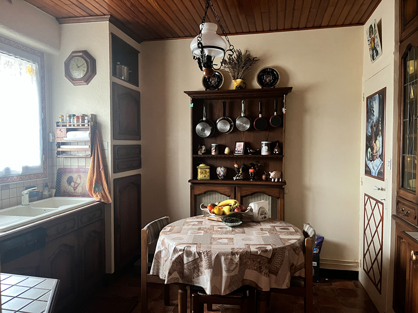 Proche des commerces, cette maison sur sous-sol, entretenue, vous attend ! elle dispose d'un séjour salon, cuisine indépendante aménagée, salle de bains, 3 chambres, wc dégagement avec placard donnant accès à l'étage avec un grand espace chambre, bureau et salle d'eau avec wc privatif. Au sous-sol garage double, cave, chaufferie, lingerie, débarras et coin bureau.