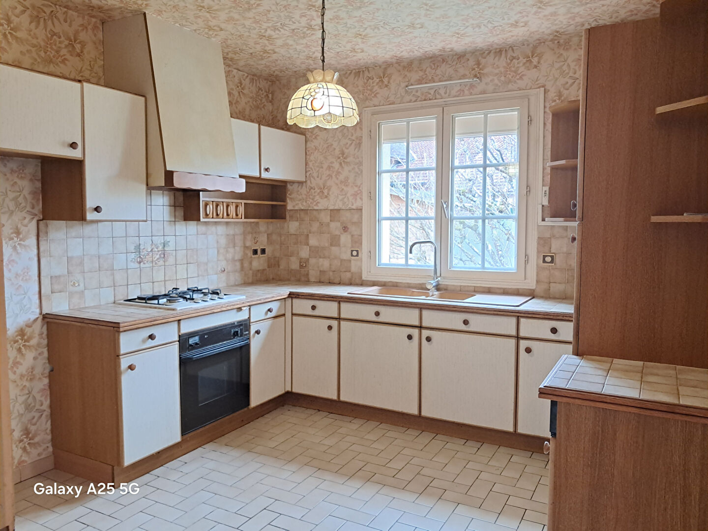 Maison de construction traditionnelle de 1990 élevée sur sous-sol total avec jardin clos et arboré, située dans un environnement calme et agréable, offrant un beau potentiel après quelques travaux de rafraîchissement. Le double séjour est spacieux et lumineux [cheminée insert], la cuisine est actuellement indépendante mais elle peut facilement être ouverte sur la salle à manger, 2 chambres composent déjà cette vie de plain-pied et les combles sont aménageables [potentiel d'agrandissement de 60m² environ]. Le sous-sol total offre un vaste espace comprenant une chambre d'appoint, une pièce de rangement, une chaufferie/buanderie, des toilettes , une cave et un double garage. Chauffage au gaz de ville.