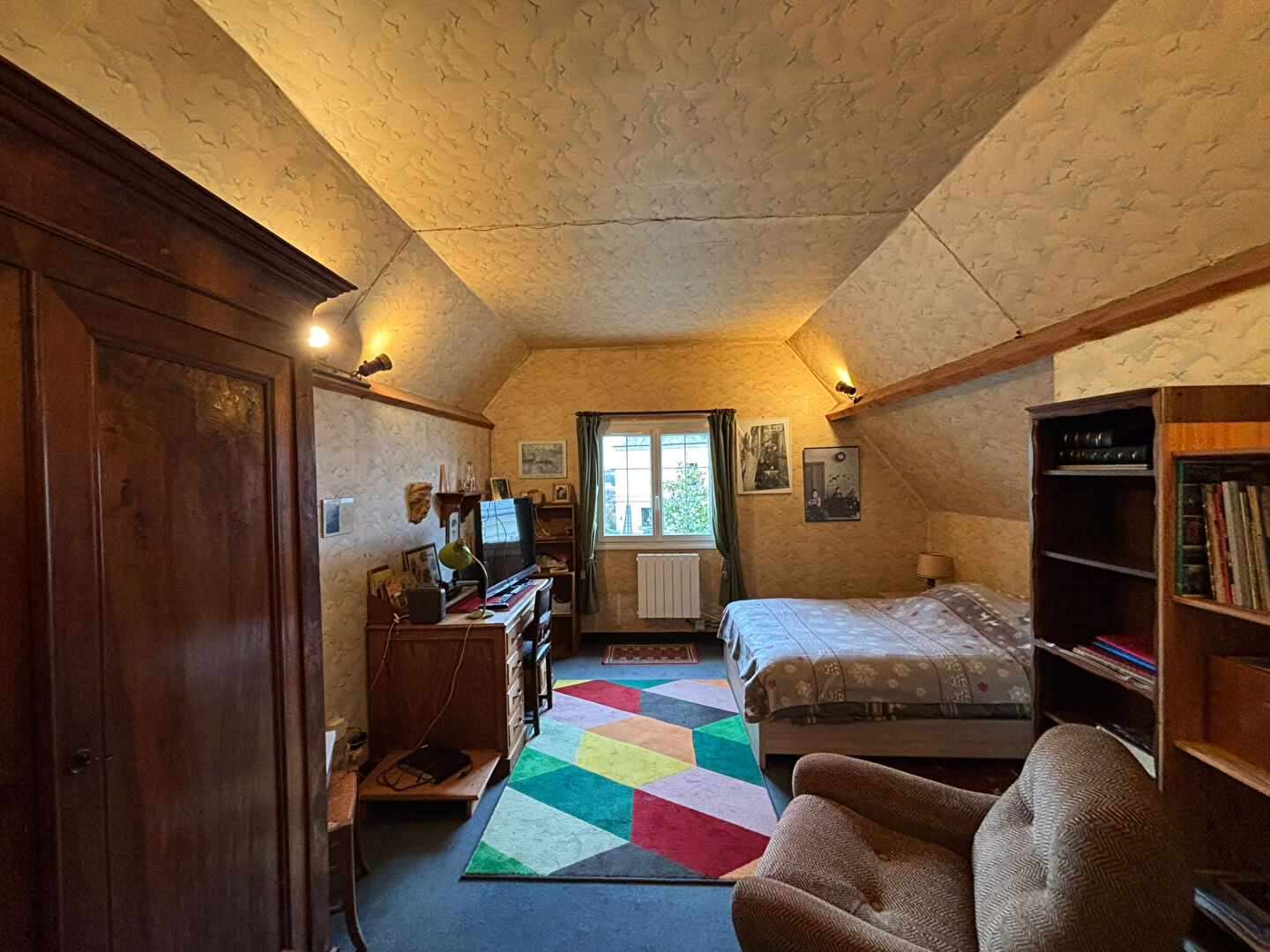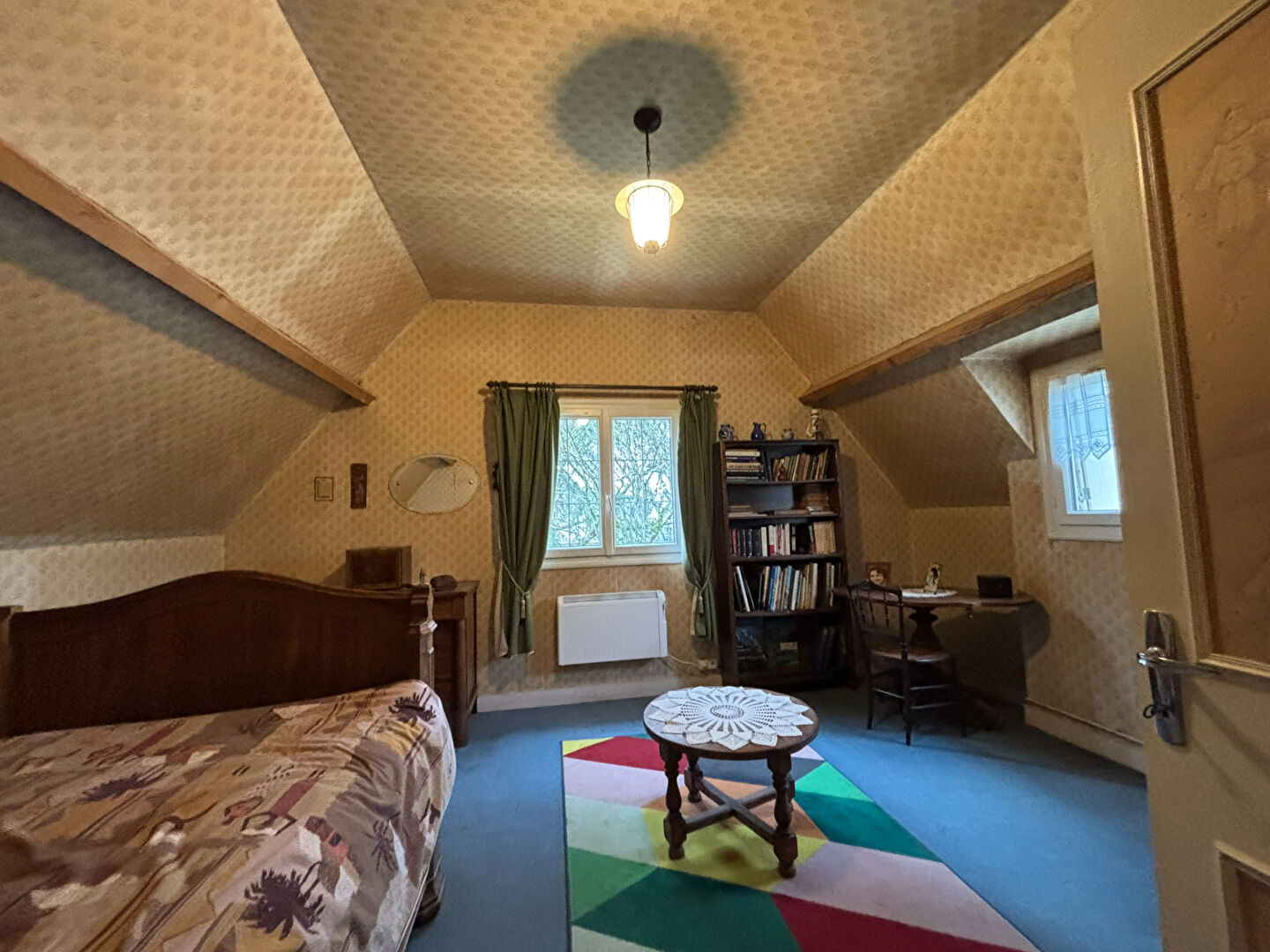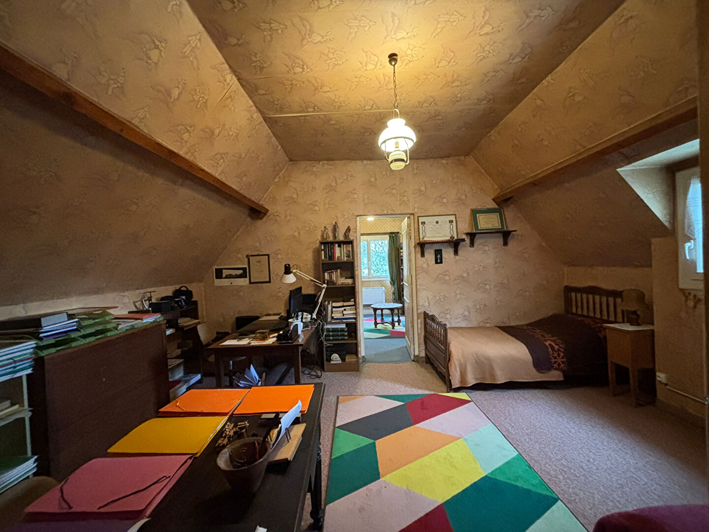 A l'étage se trouve un palier, un spacieux bureau, deux chambres et une partie de grenier aménageable.