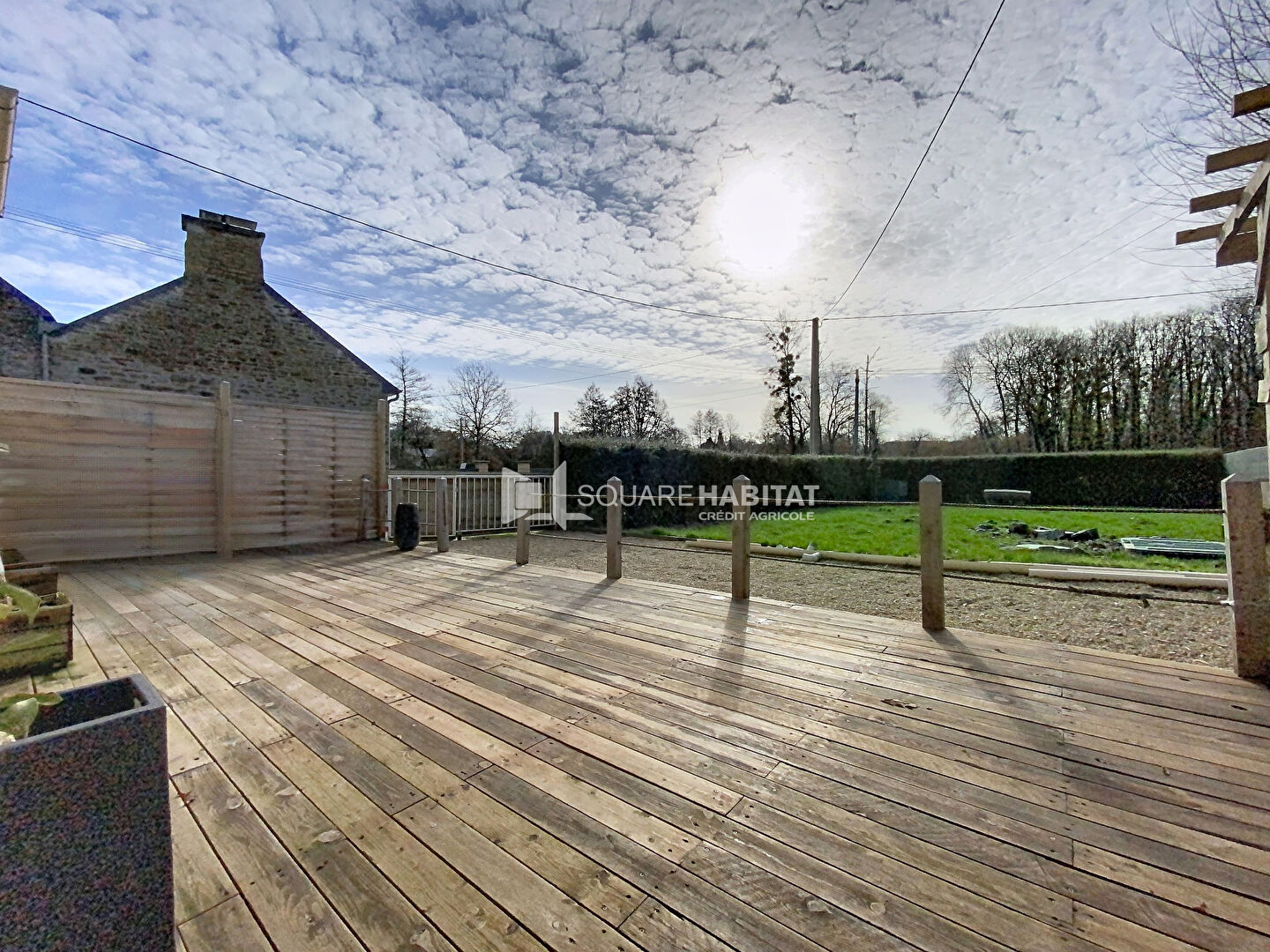 À l'extérieur, le charme opère immédiatement : un jardin bucolique vous invite à la détente. La terrasse exposée plein sud offre une vue dégagée sur un champ, sans aucun vis-à-vis, un véritable havre de paix pour profiter des beaux jours en toute tranquillité.