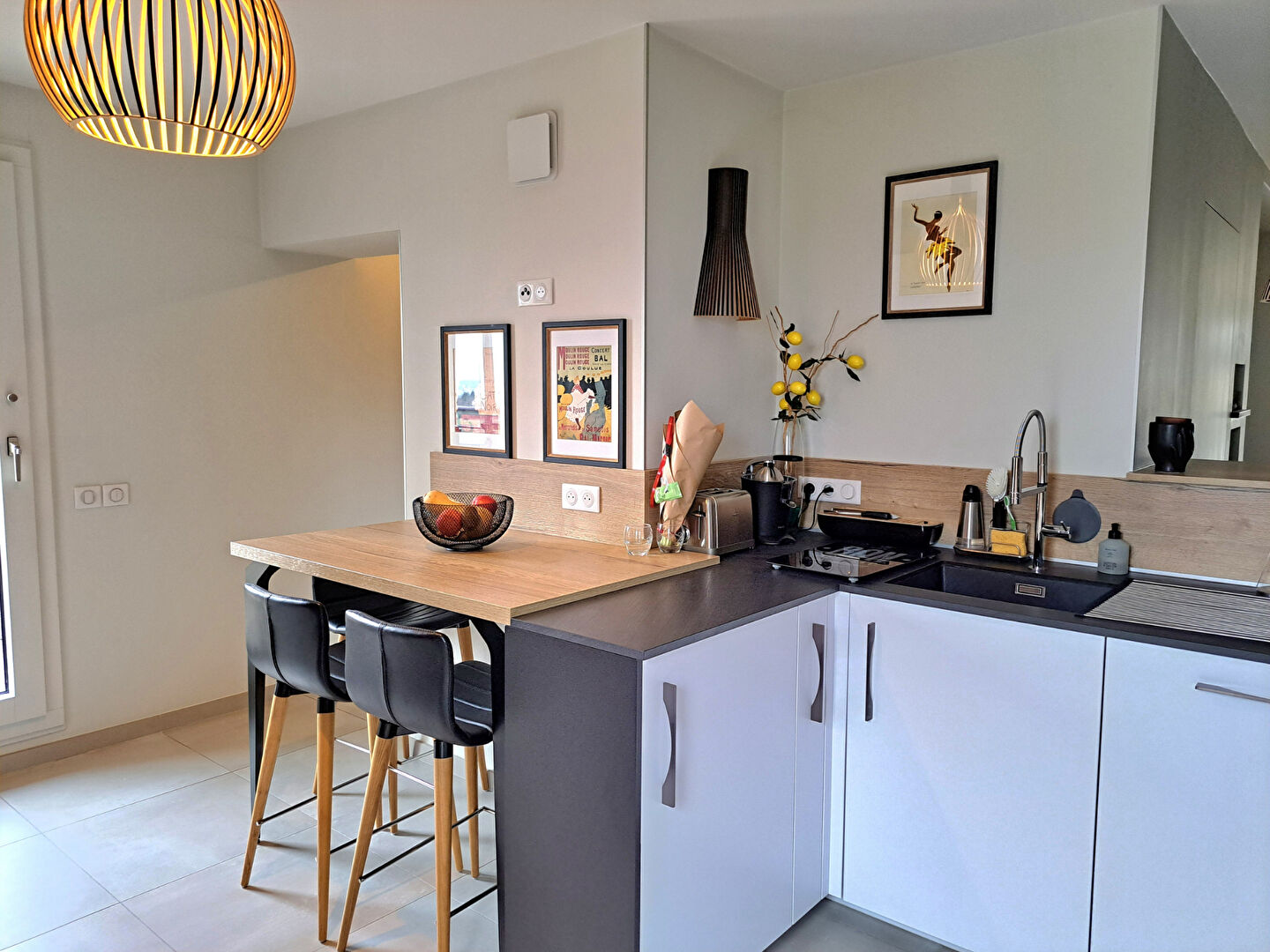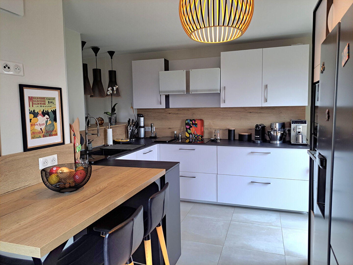 La cuisine, au design contemporain et aux équipements de qualité, conjugue esthétisme et fonctionnalité. Pensée comme un véritable lieu de partage, elle s'ouvre harmonieusement sur la terrasse, créant une continuité fluide entre intérieur et extérieur et renforçant l'art de vivre qu'offre cet attique.