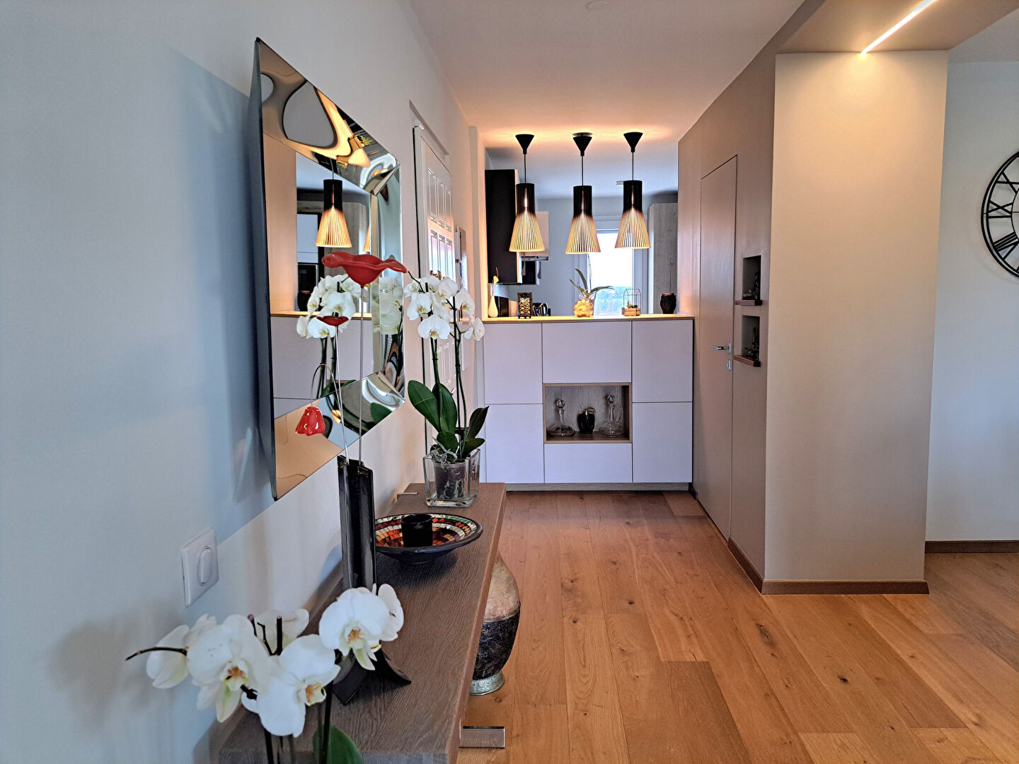 À quelques instants de la frontière suisse, au coeur de Saint-Julien-en-Genevois et à seulement une minute de la douane de PERLY, ce duplex traversant entièrement rénové incarne avec élégance des prestations contemporaines et haut de gamme qui s' expriment avec justesse. Niché au sein d'une résidence privée et sécurisée avec piscine et court de tennis, il développe 110,84 m² habitables (134 m² utiles et 193,78 m² au sol) et offre un cadre de vie rare aux portes de Genève.