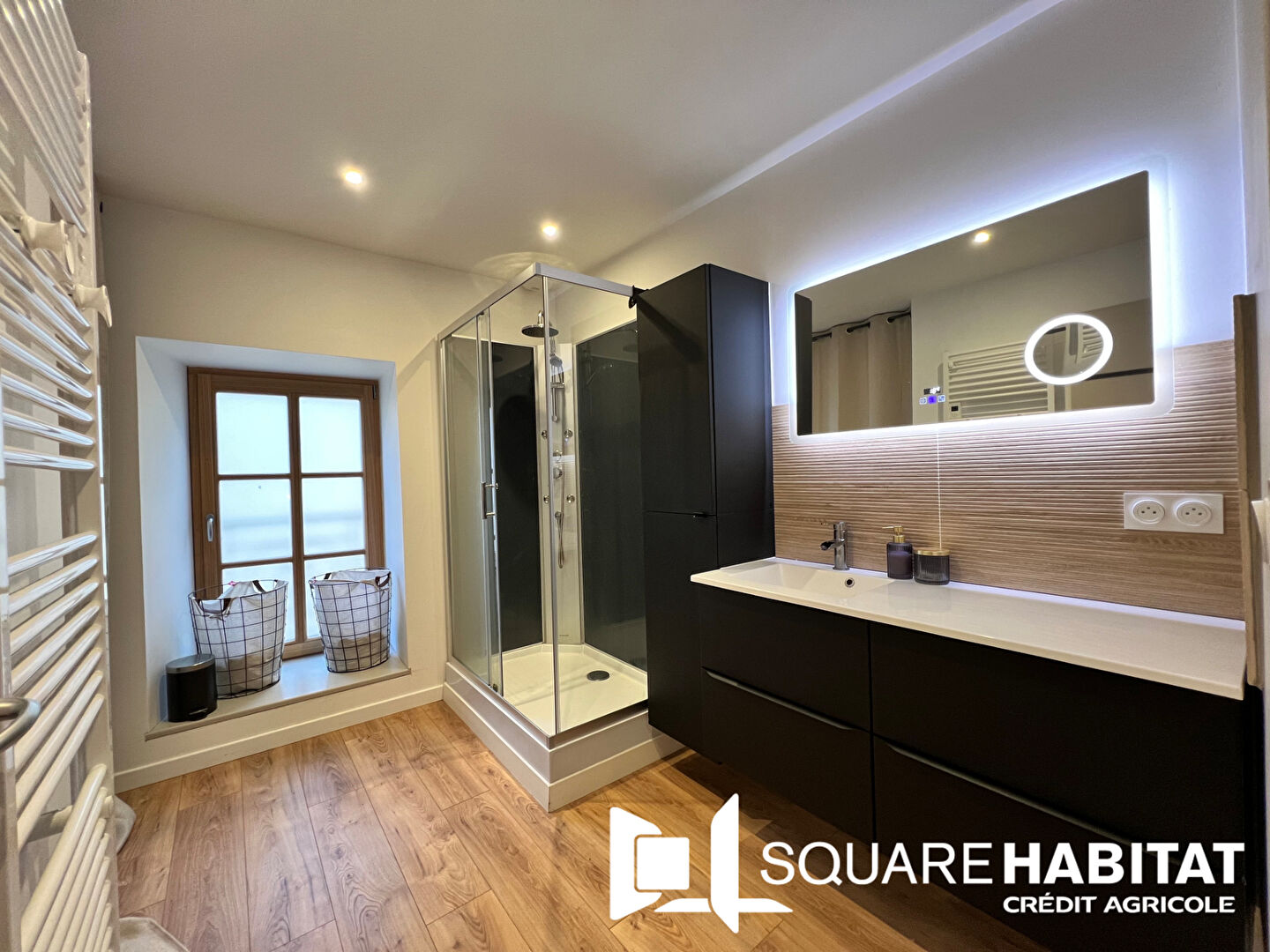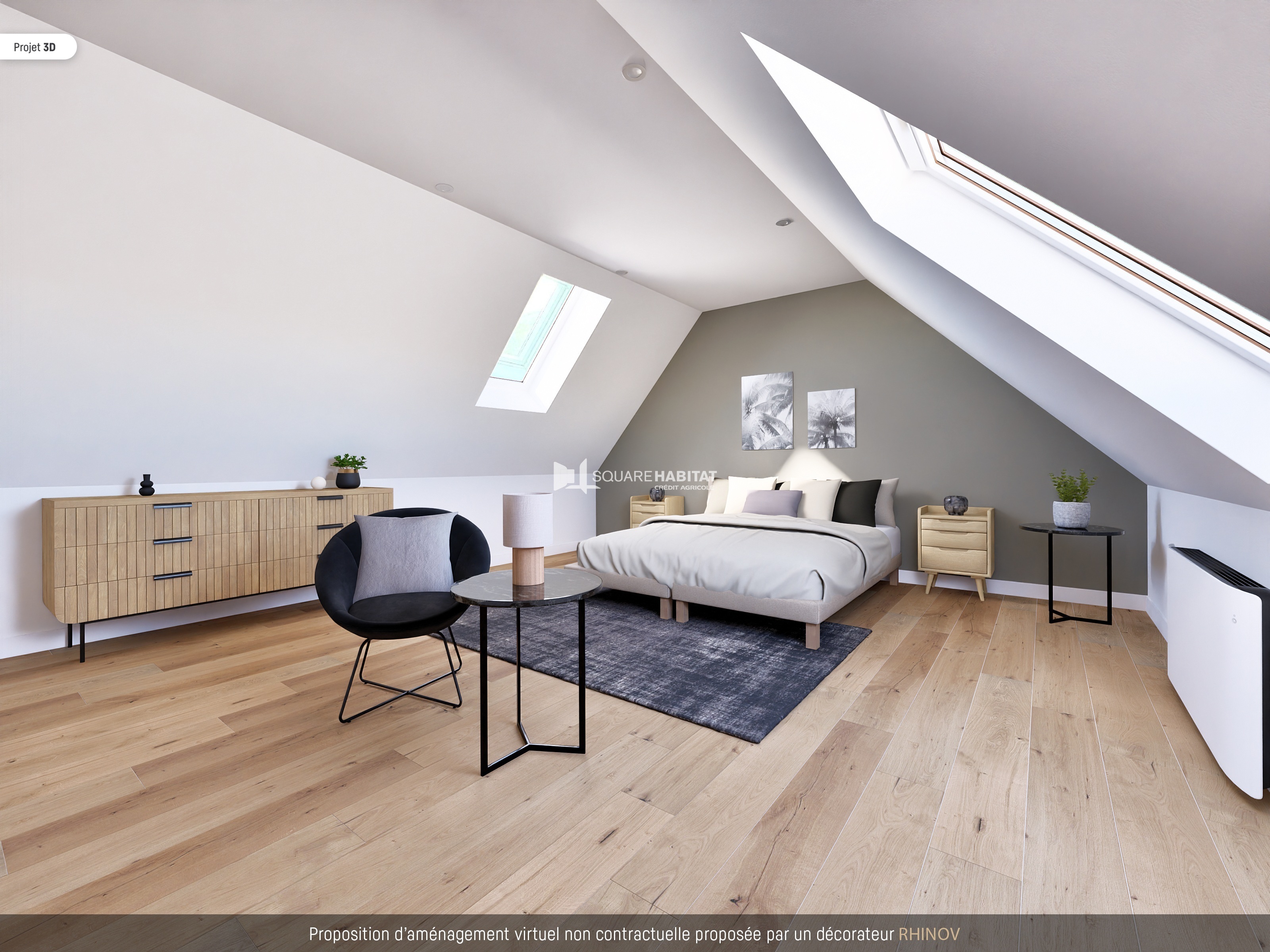 - en duplex, vous retrouverez une seconde chambre de 28 m² au sol avec salle de bain ouverte.