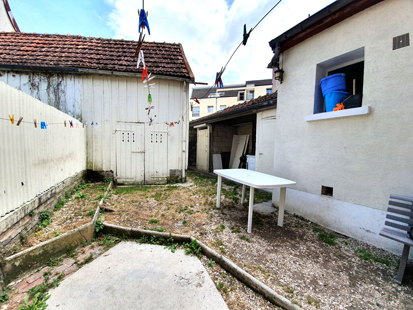 À l'extérieur, vous profiterez d'une courette privative à l'arrière, agréable et facile d'entretien, ainsi que de petites dépendances (remises) offrant un espace de stockage appréciable.