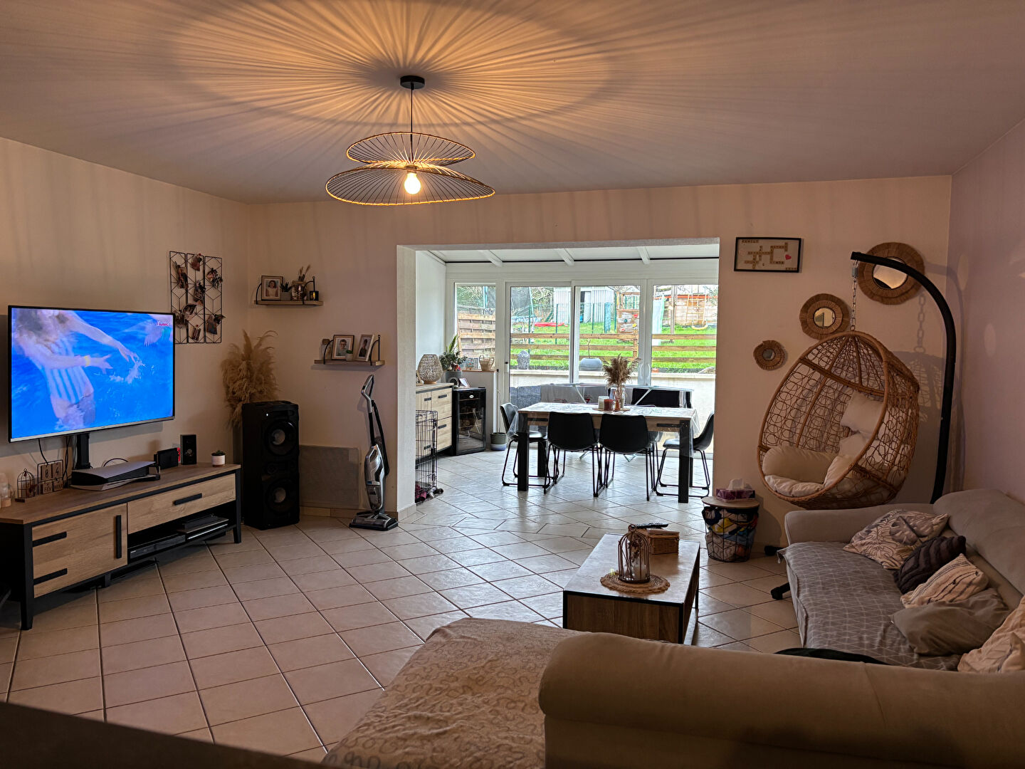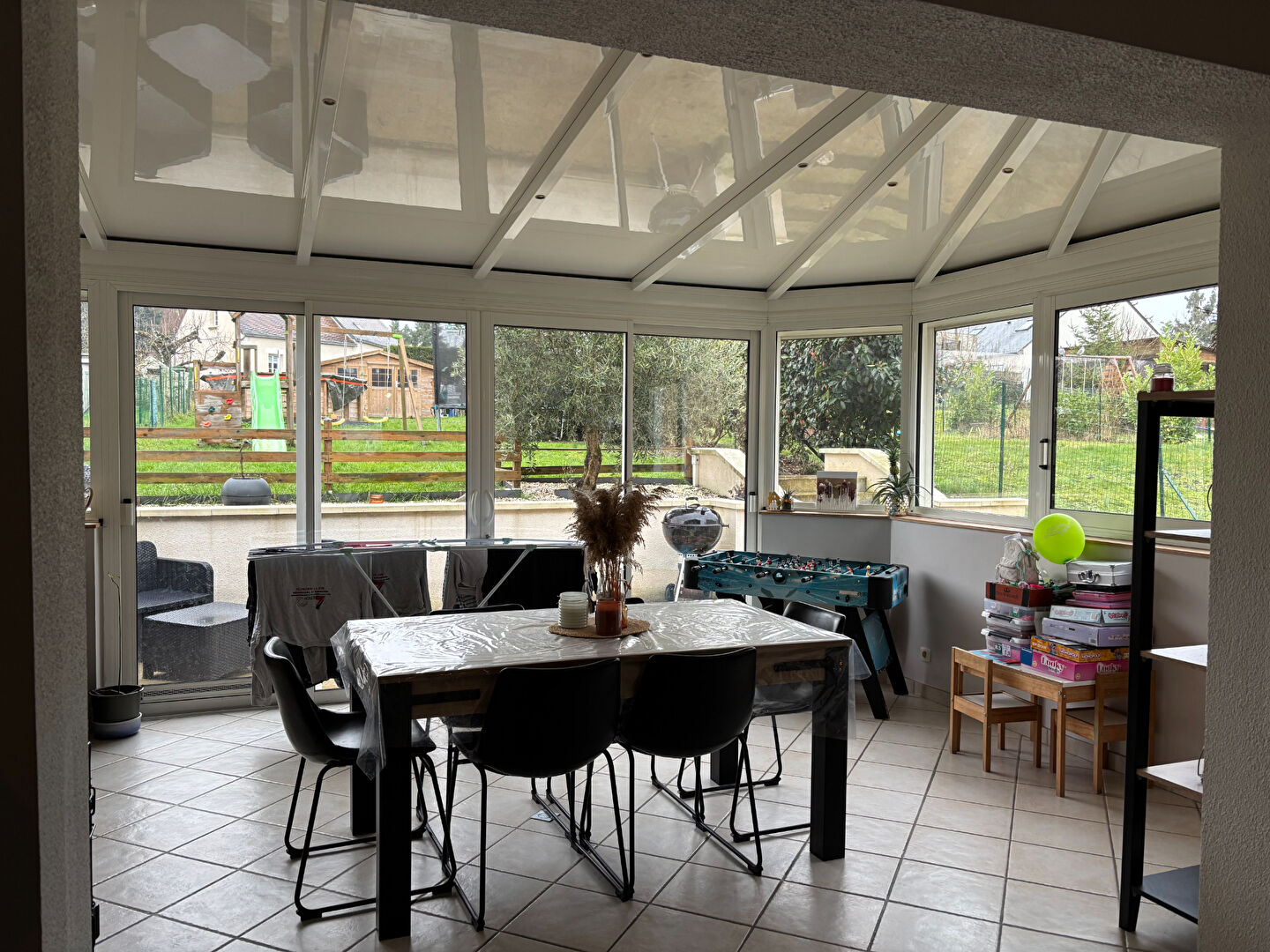 Rez-de-chaussée : Une entrée distribue un espace de vie comprenant un salon avec une cuisine aménagée et équipée, un wc et une grande véranda lumineuse aménagée en salle à manger.