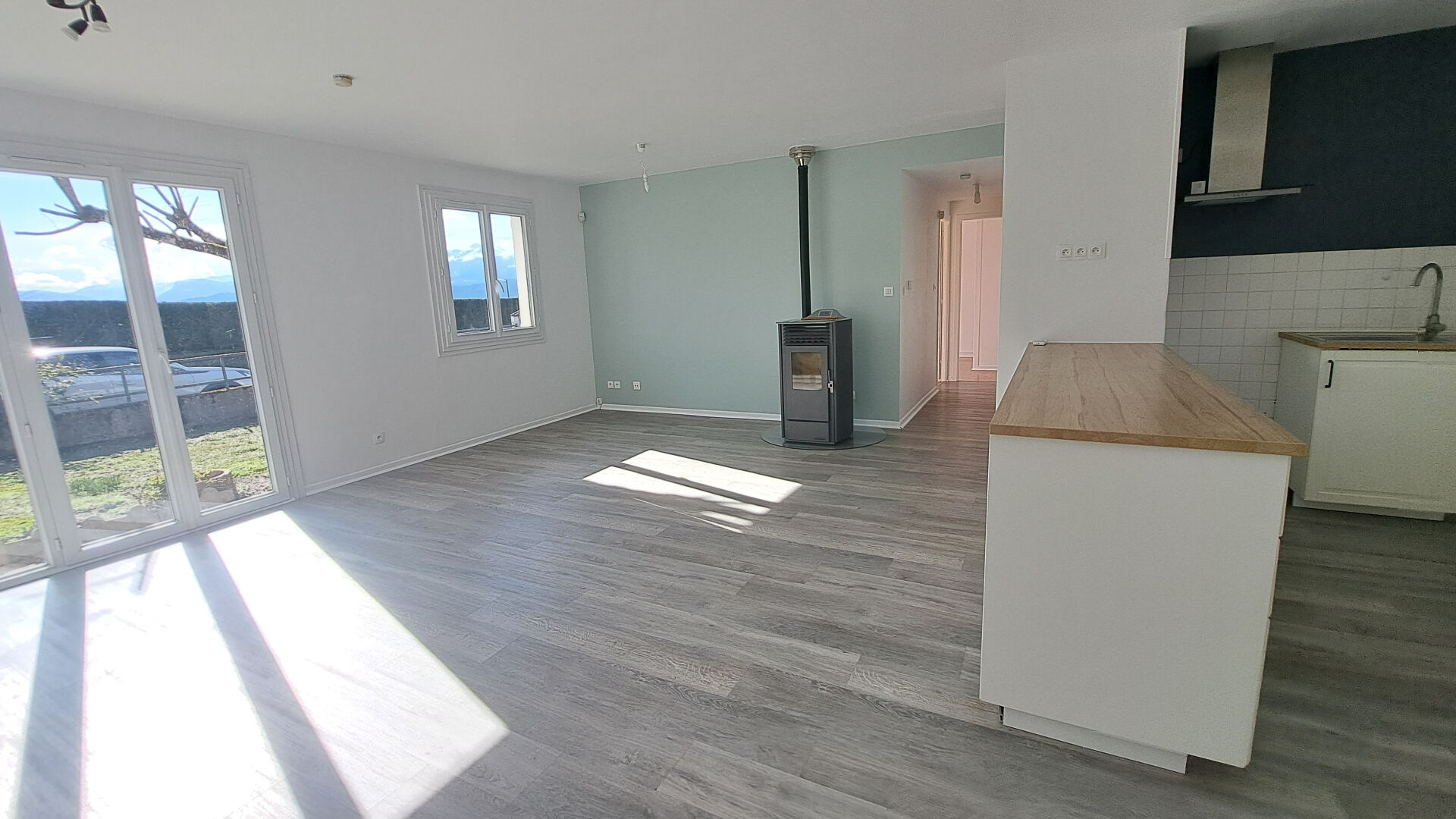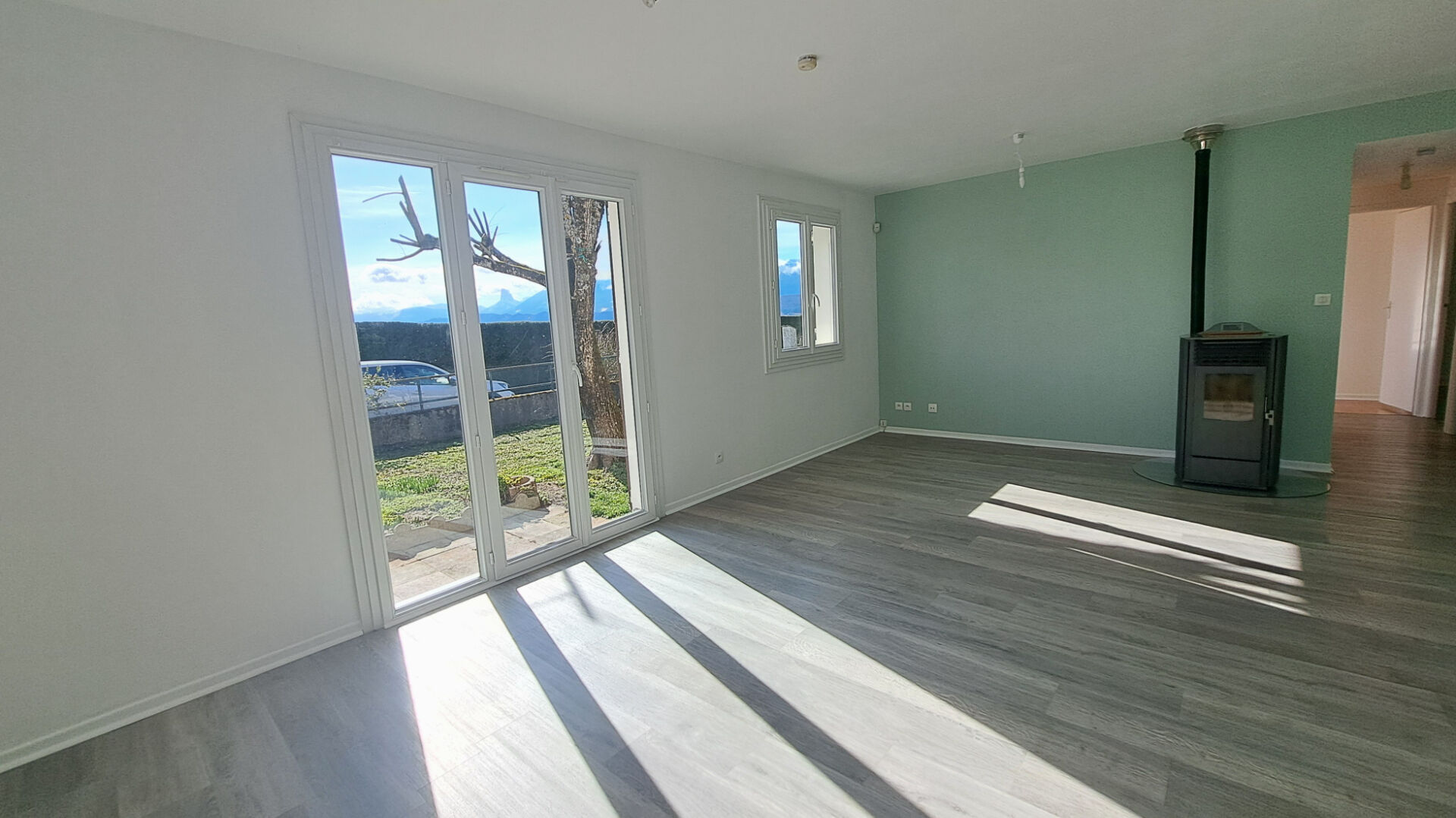 Maison de plain-pied de 83 m² sur 1620M² de terrain, avec très jolie vue sur le Vercors. Composée d'une belle pièce de vie lumineuse et conviviale, trois chambres, salle de douche et WC, cellier buanderie. Côté confort, elle est équipée d'un poêle à granulés ainsi que d'une pompe à chaleur air/air, assurant performance énergétique et économies au quotidien.