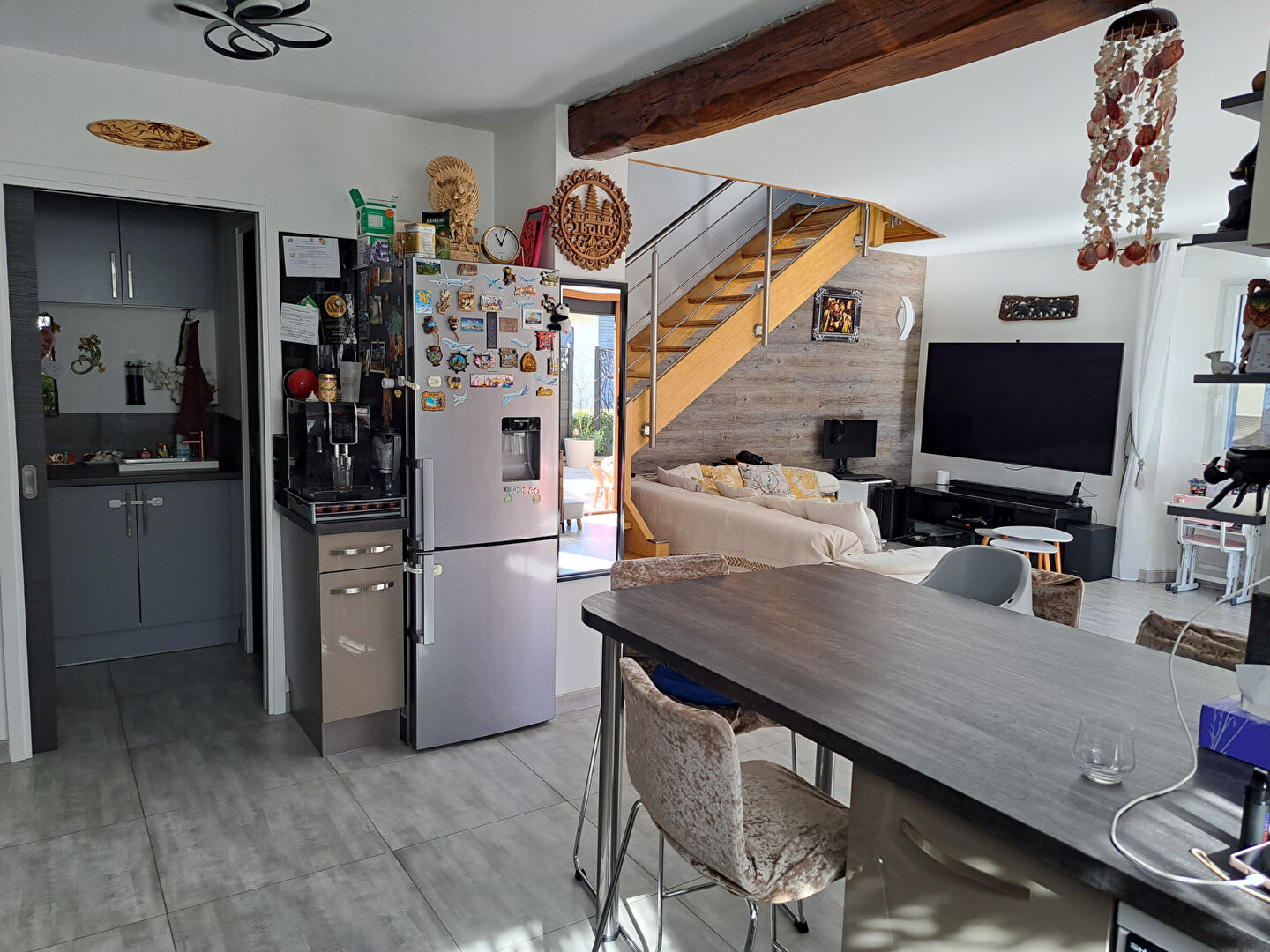 Jouissant d'une belle luminosité, confortable maison de 106m² habitables sise sur un terrain de 240m². En excellent état, elle dispose au rez-de-chaussée, d'un séjour avec cuisine américaine équipée de +/-45m² ouvert sur une belle et grande terrasse de +/-50m² orientée Sud-Ouest, d'une buanderie et d'un WC indépendant.