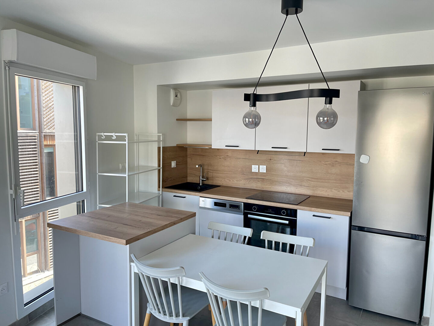 Cet appartement se compose d'un salon séjour avec cuisine ouverte très lumineuse avec un accès à un balcon.