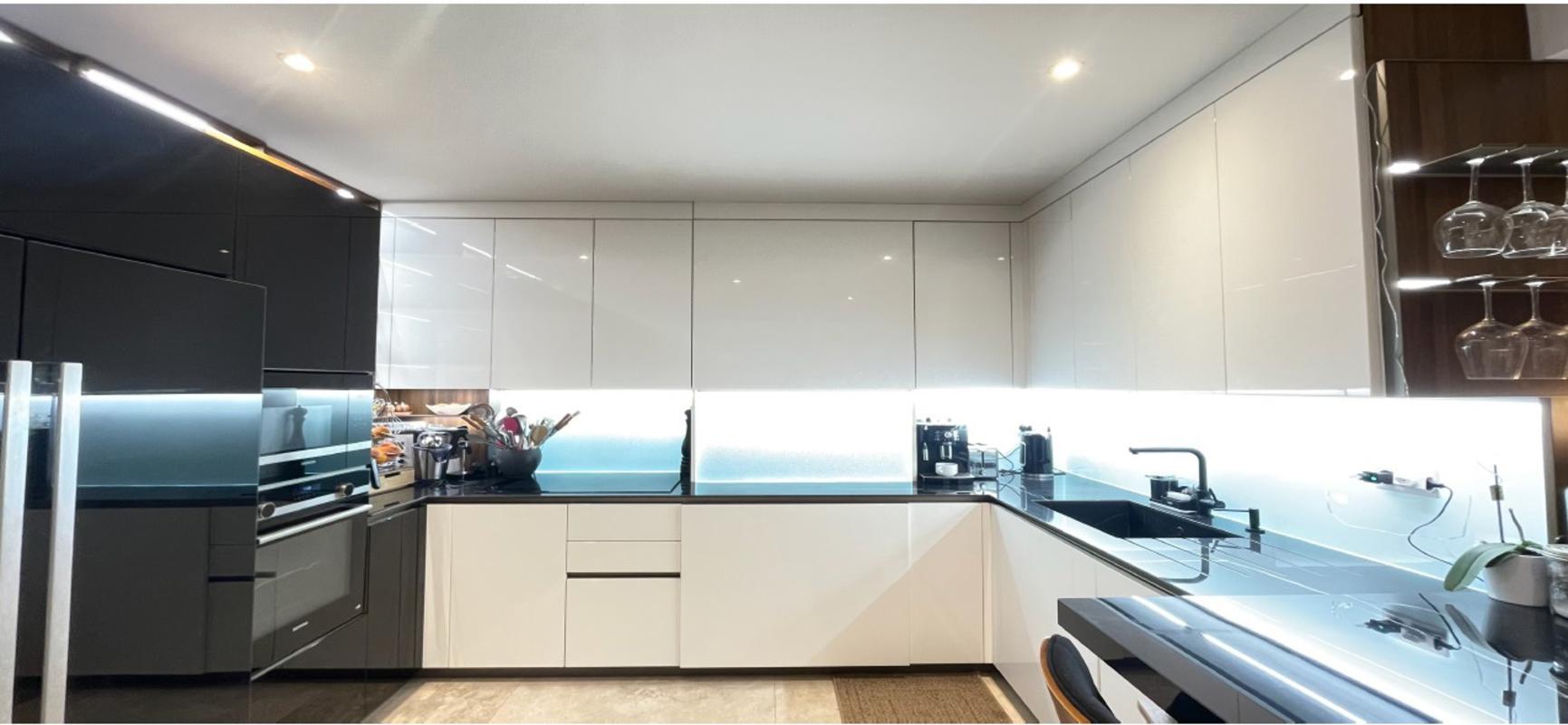 - L'appartement principal offre une grande pièce de vie (62 m2) lumineuse avec cuisine ouverte donnant directement sur la terrasse. Il comprend quatre
