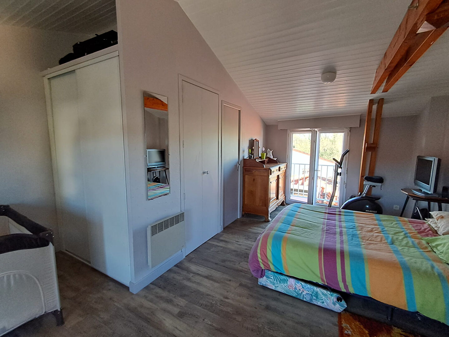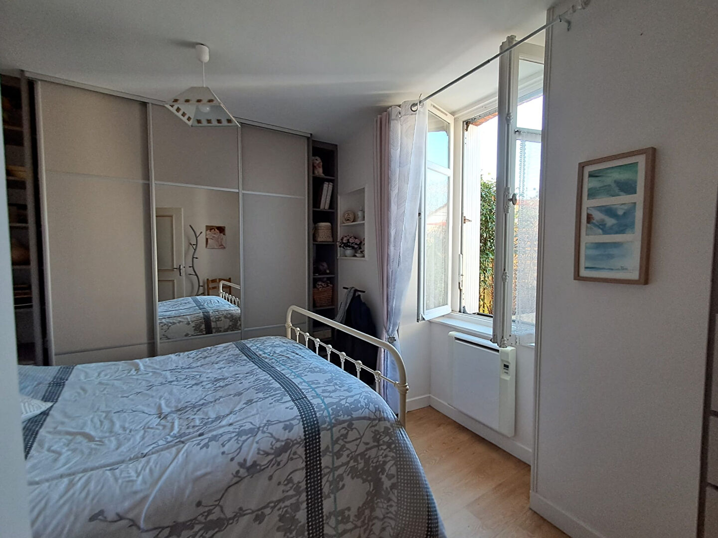 À l'étage, deux chambres vous attendent, dont une spacieuse avec sa salle d'eau privative, offrant confort et indépendance.