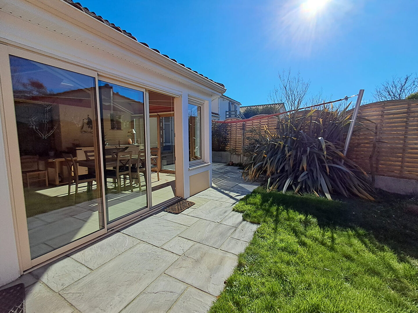 Dès l'entrée, vous serez séduits par une atmosphère chaleureuse et conviviale. Le salon cosy invite à la détente, tandis que la cuisine aménagée et équipée s'ouvre sur une belle véranda baignée de lumière. Véritable pièce de vie supplémentaire, elle donne accès à un jardin intimiste et bien exposé, parfait pour profiter des beaux jours en toute tranquillité.