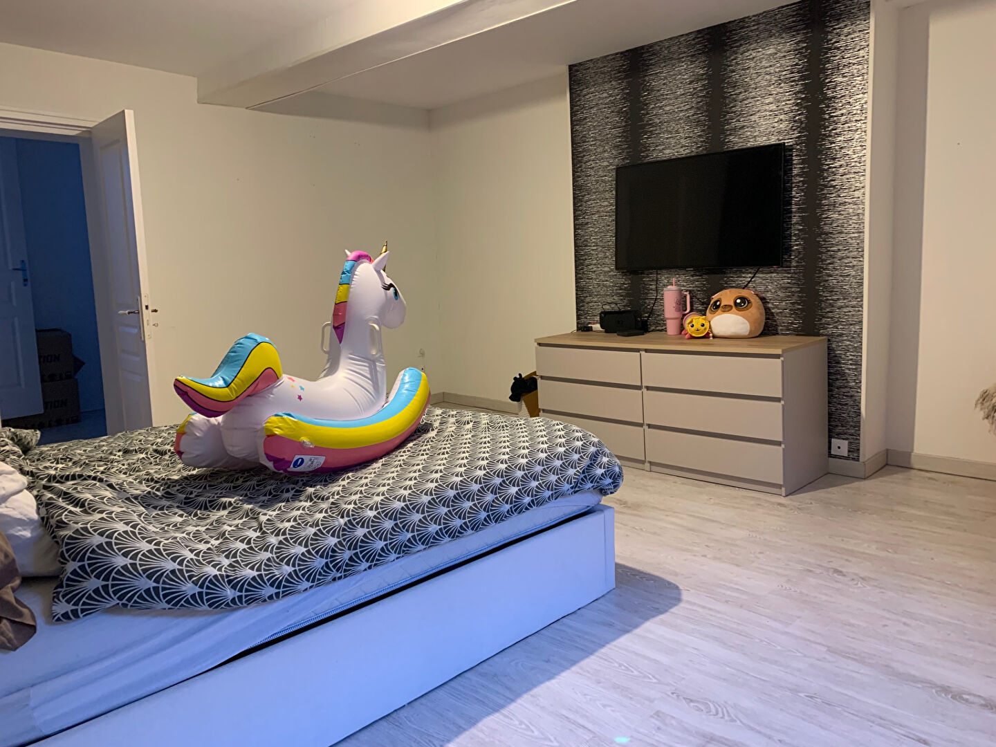 A l'étage : Palier desservant grande chambre avec dressing, et deux autre chambres. salle d'eau.
