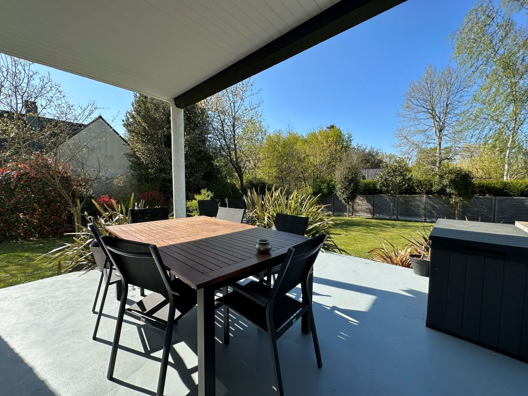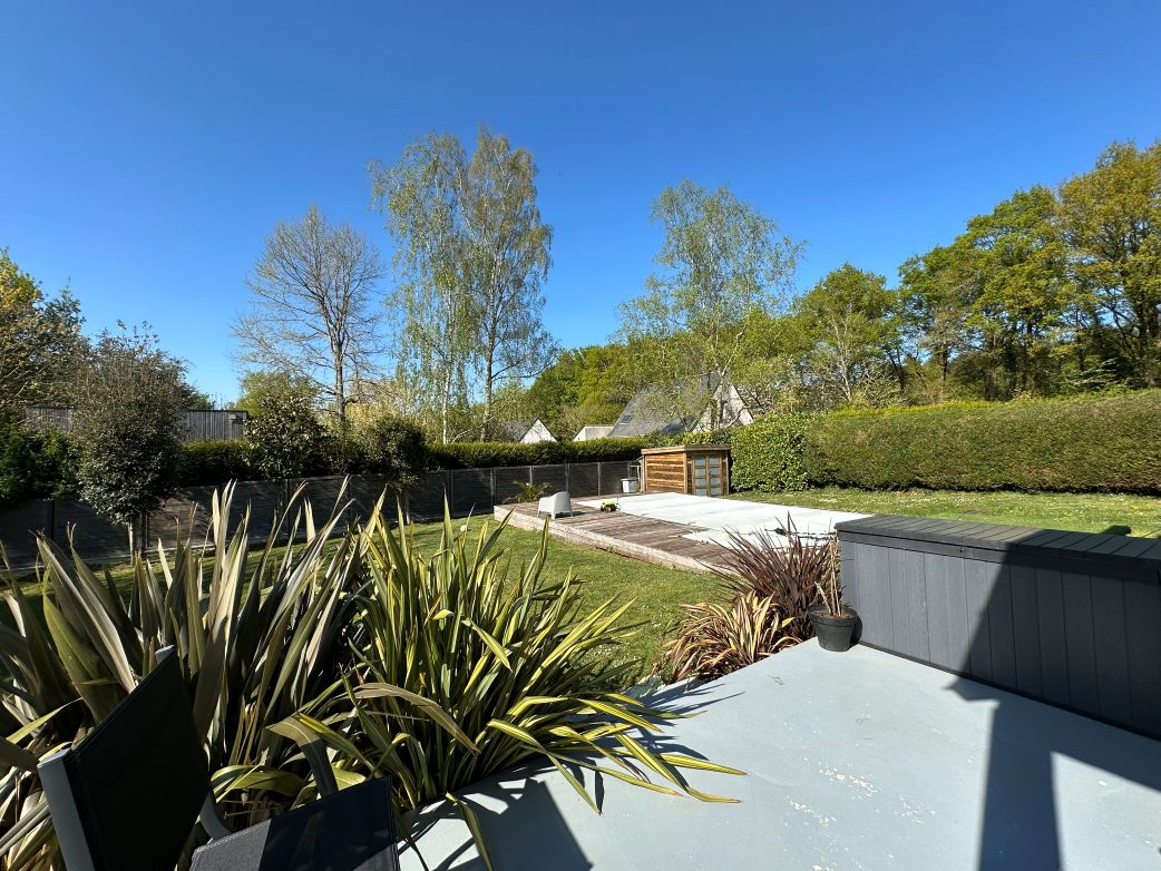 Un jardin généreux et verdoyant où il fait bon se détendre avec piscine pour profiter des beaux jours en toute sérénité.