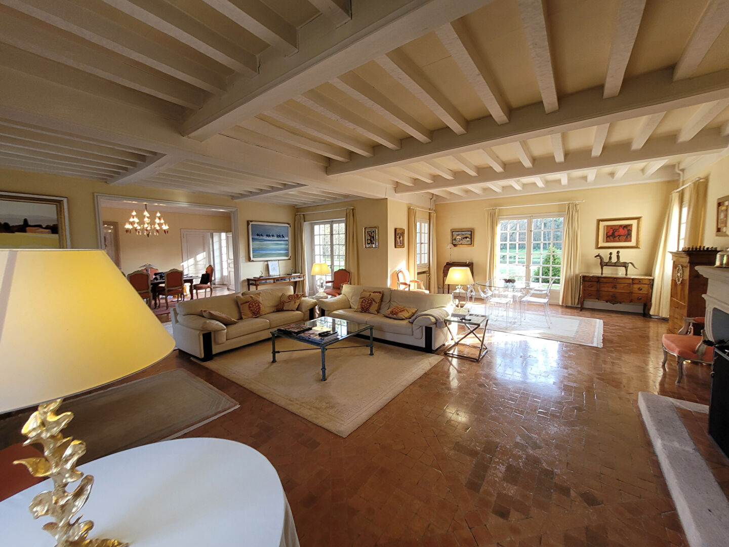La bâtisse principale, une élégante demeure de style traditionnel, développe environ 365 m² habitables. Elle se distingue par ses volumes généreux, sa luminosité et son ouverture constante sur le parc.