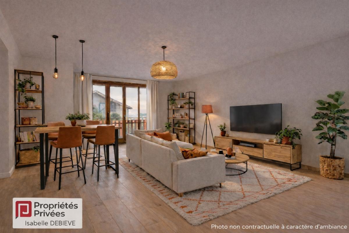 Un salon/séjour lumineux ouvrant sur un agréable balcon d'environ