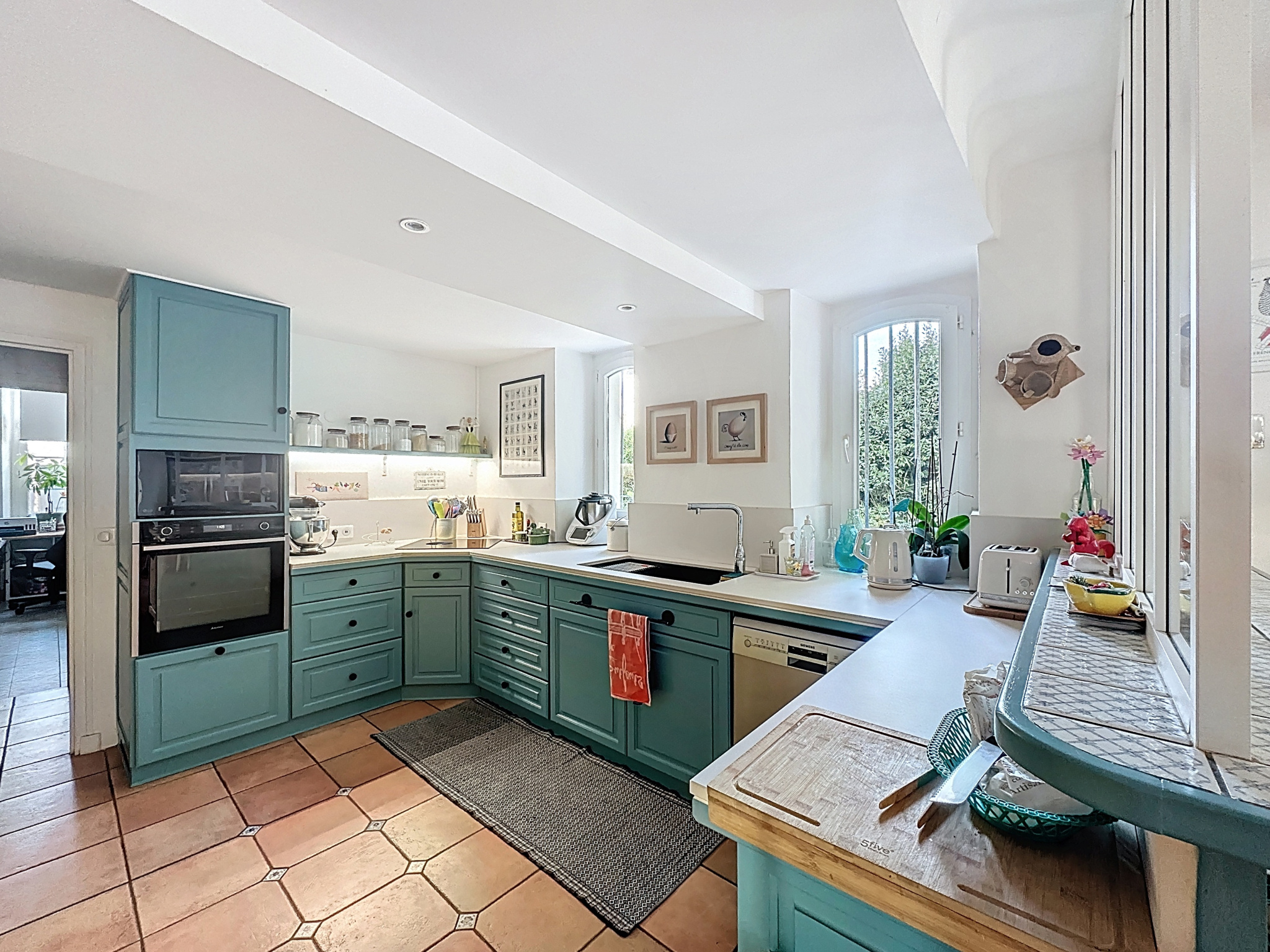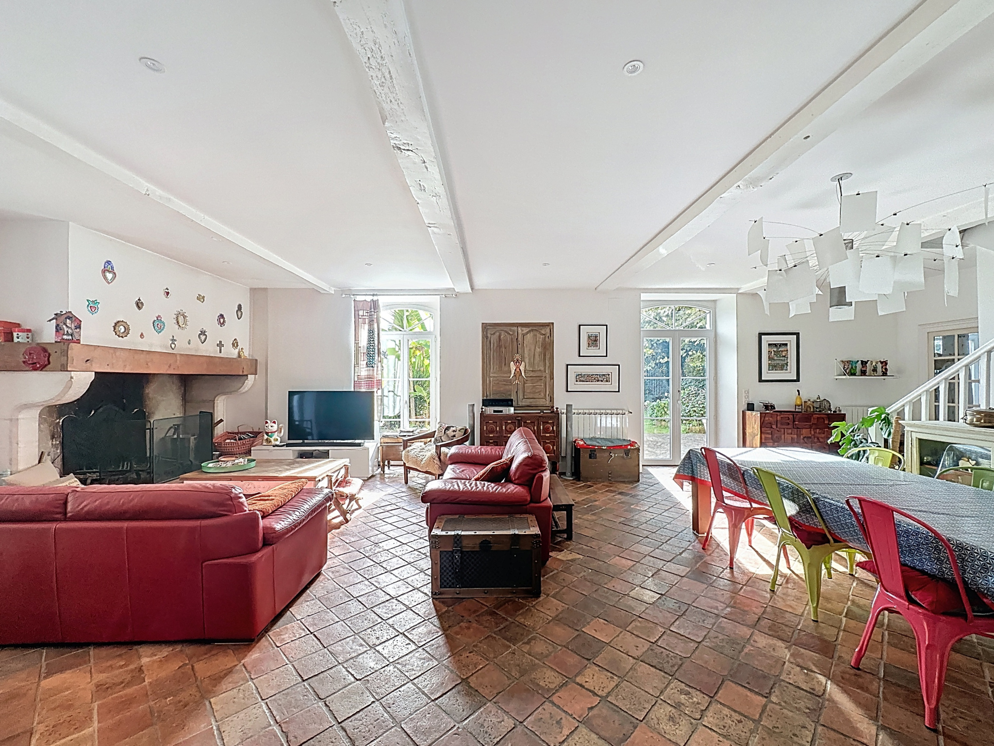 Lumineuse et spacieuse, elle offre au rez-de-chaussée un vaste séjour-salon avec cheminée et portes-fenêtres ouvrant sur le jardin, une cuisine ouverte sur un coin repas convivial, une bibliothèque (ou salle polyvalente), un bureau et une buanderie.Une pièce indépendante climatisée complète l'ensemble, idéale pour un atelier, un espace de télétravail ou autre.