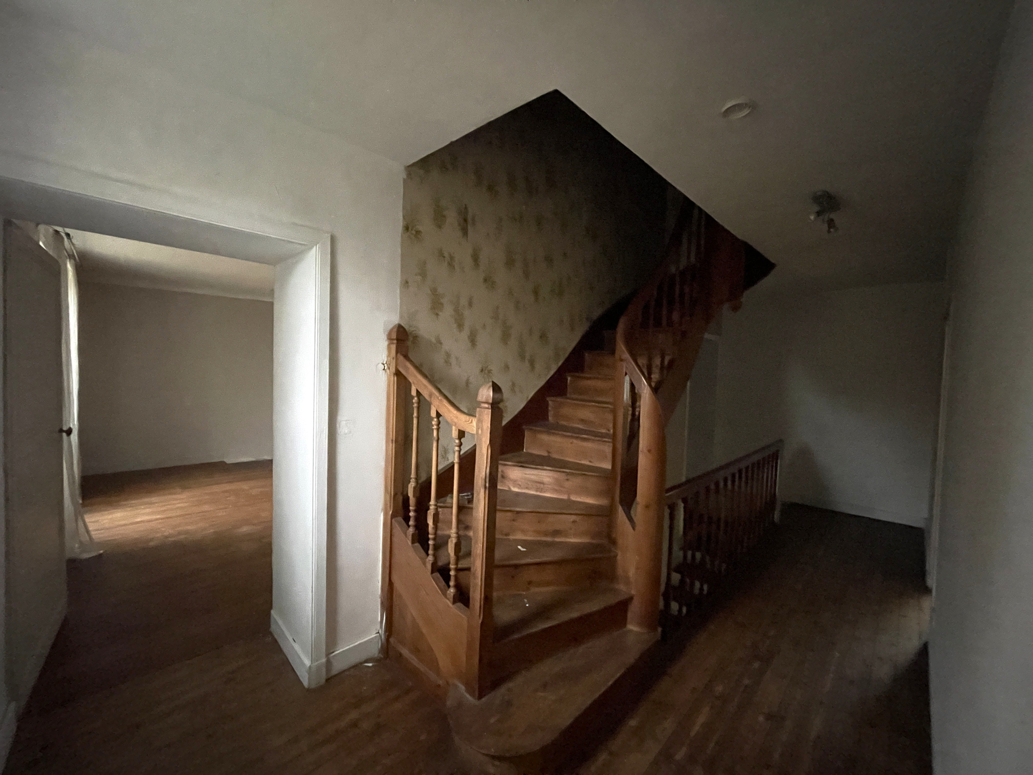 Au rez-de-chaussée : grand salon séjour avec cheminée ancienne en marbre et escalier chêne desservant le premier étage, une chambre, dégagement, cuisine, WC, placards.