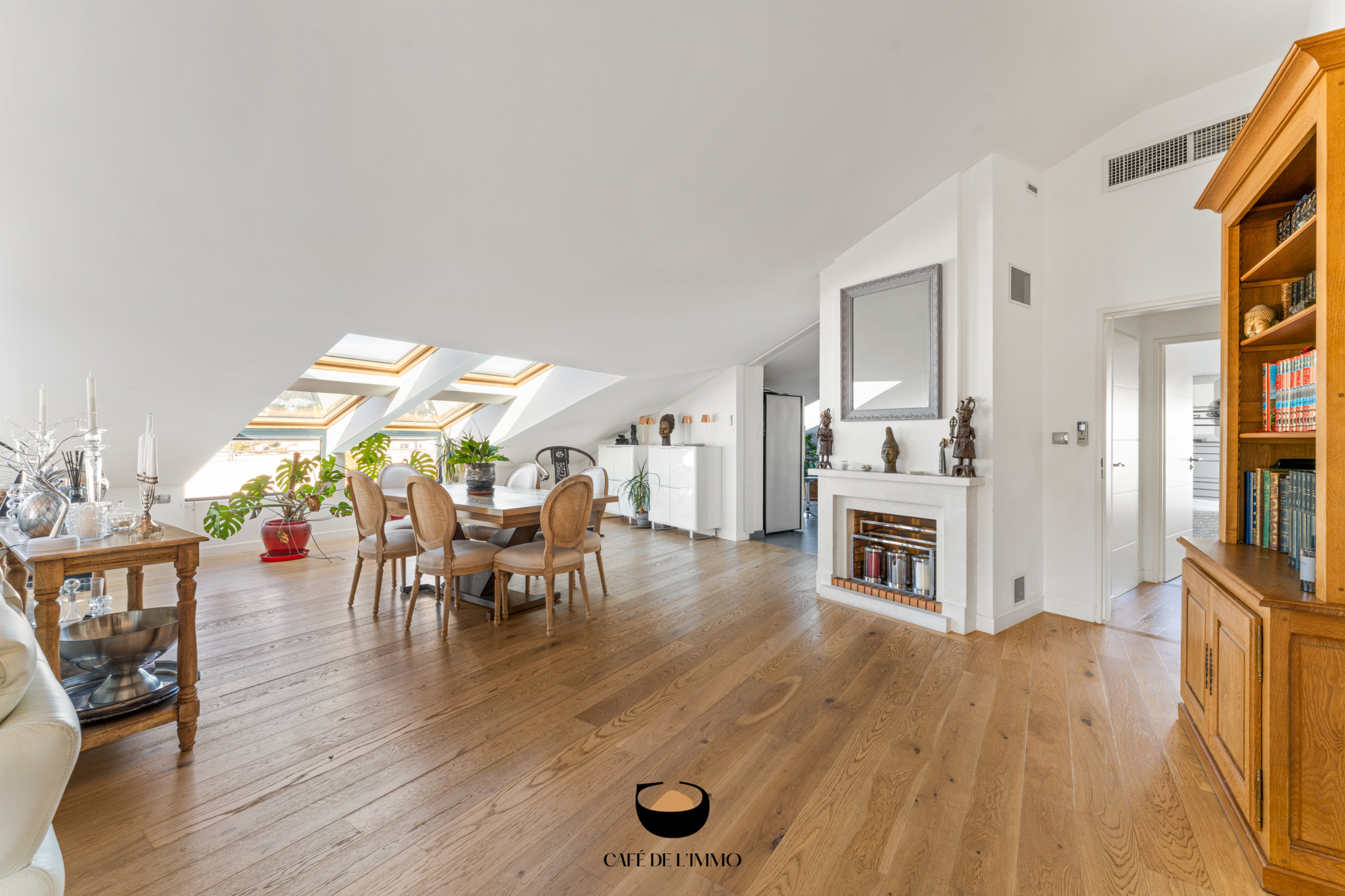 Dès la sortie de l'ascenseur, qui vous conduit directement sur votre palier privé, laissez-vous séduire par ce type 4 de 200m2 habitables (139m2 Loi Carrez). Situé au 4ème et dernier étage, il offre un cadre de vie prestigieux et une luminosité absolue grâce à sa quadruple exposition.