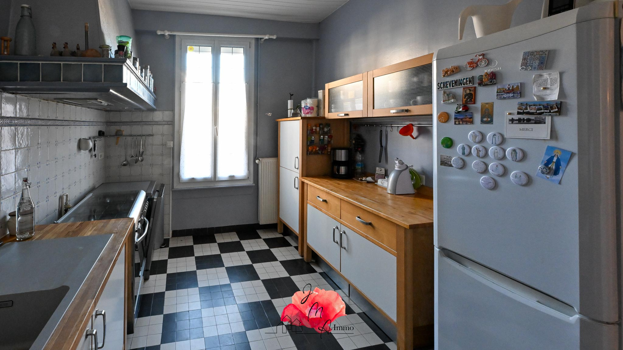 Dès l'entrée, le caractère de la maison s'impose : vitraux d'origine laissant délicatement filtrer la lumière, parquet à chevrons, carreaux de ciment aux motifs raffinés et majestueux escalier en chêne massif. Chaque élément a été conservé avec soin, offrant une atmosphère chaleureuse et intemporelle.