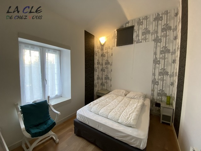 Un gîte d'environ 60 m2 composé d'une pièce de vie avec cuisine équipée et poêle à granulés, une chambre, un cellier, une mezzanine, une salle d'eau et des toilettes. Une terrasse couverte et un jardin.