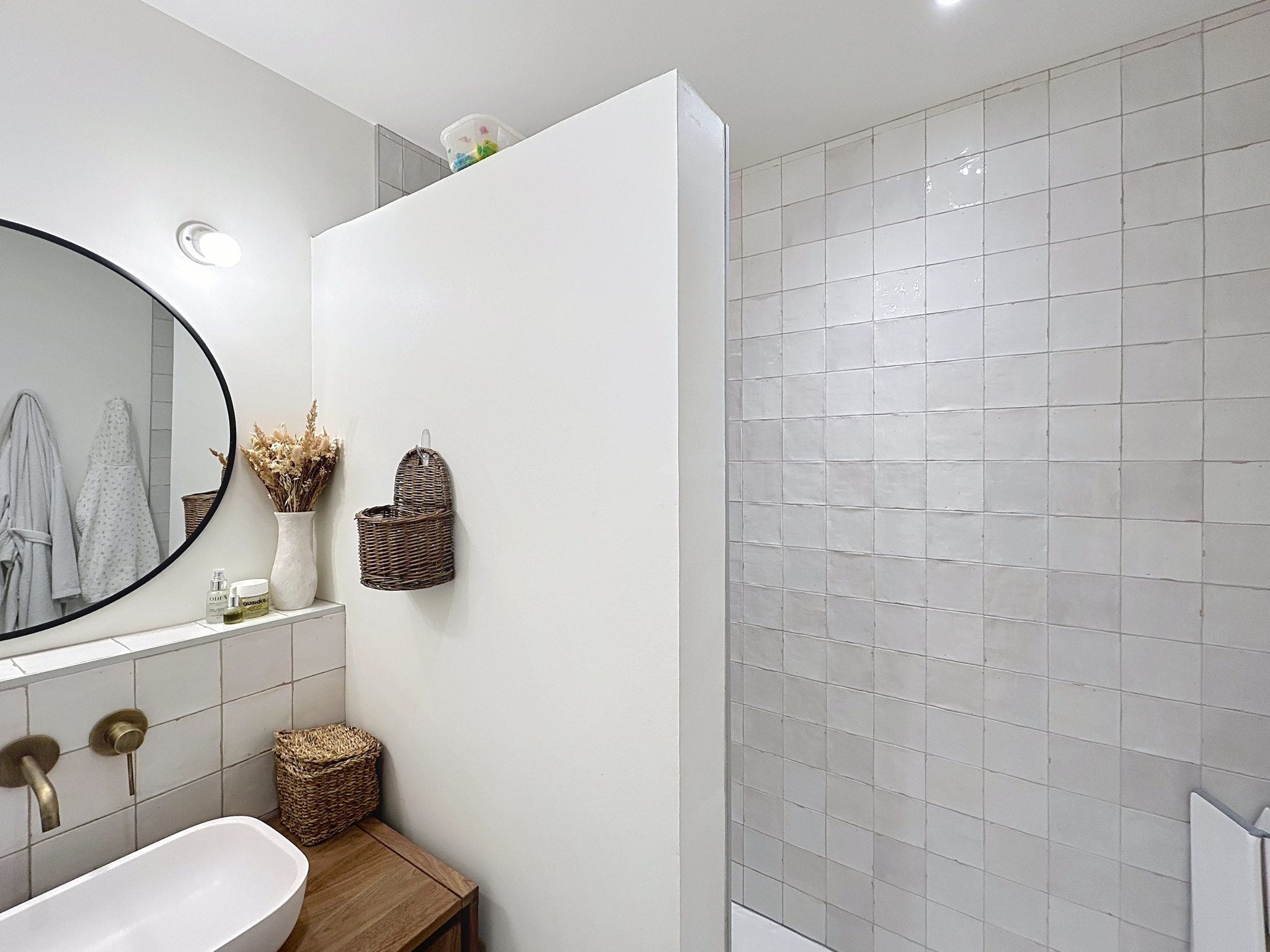 Une salle d'eau contemporaine, un WC indépendant et de nombreux rangements complètent l'ensemble.