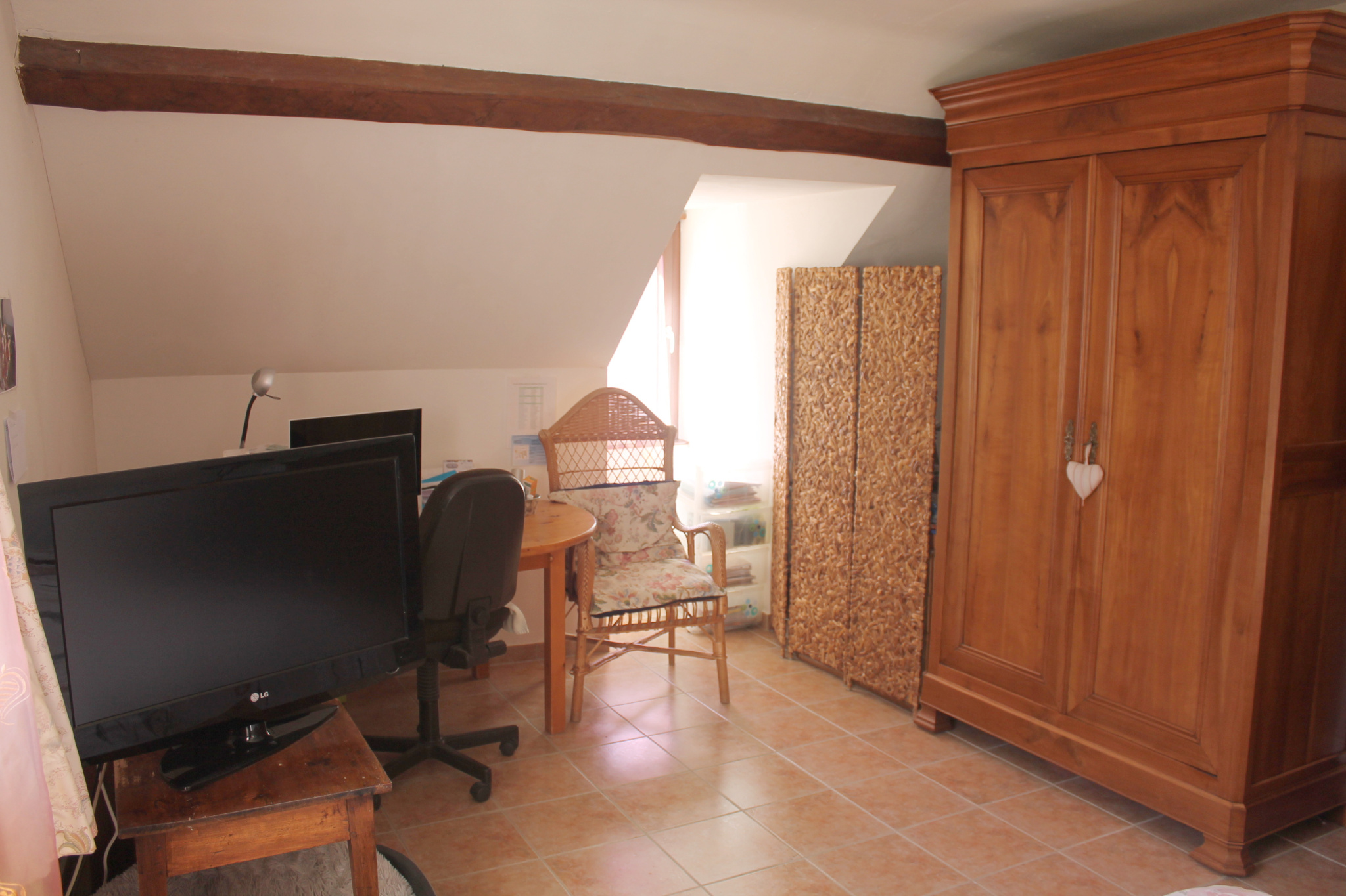 L'étage comprend 3 chambres (19.90 m2 au sol soit 15.90 m2 loi Carrez, 19.25 m2 au sol soit 12 m2 loi Carrez, 8.50 m2 au sol soit 6 m2 loi Carrez), une salle de bains (baignoire) et un WC indépendant.