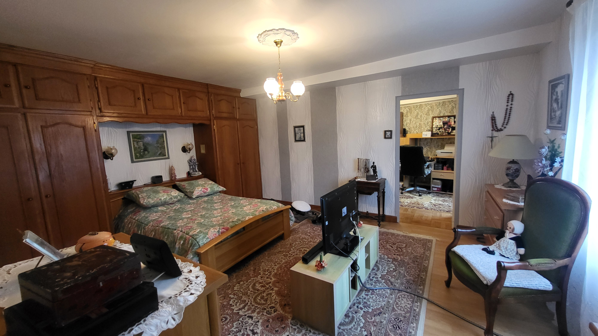 D'une surface de 145 m2, elle se compose de cinq pièces, dont trois chambres, bureau, dressing, séjour avec cheminée insert, cuisine aménagée - équipée, salle d'eau et deux wc,